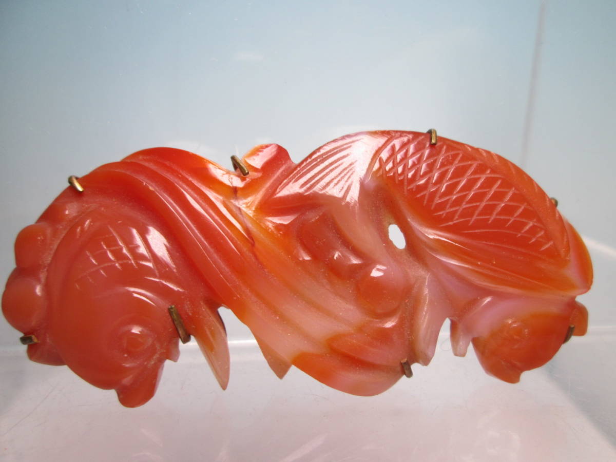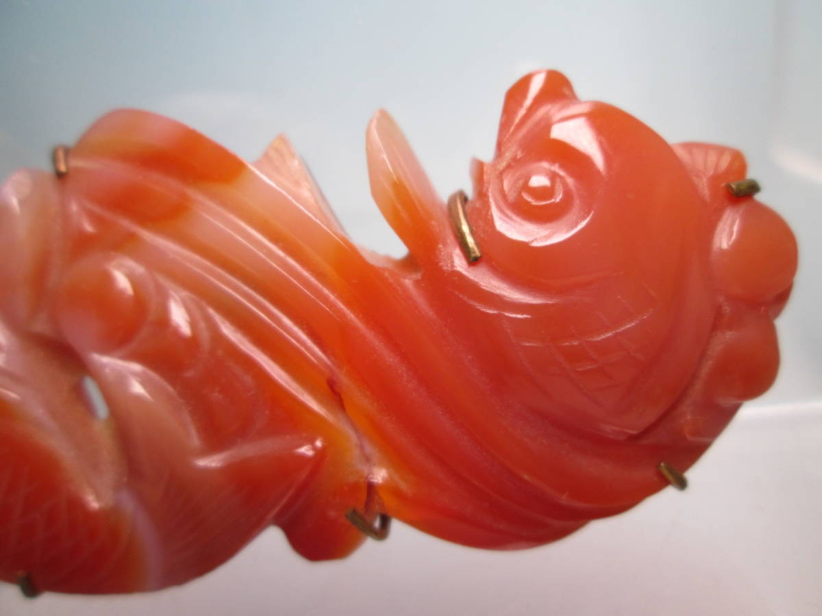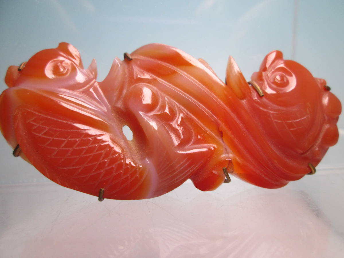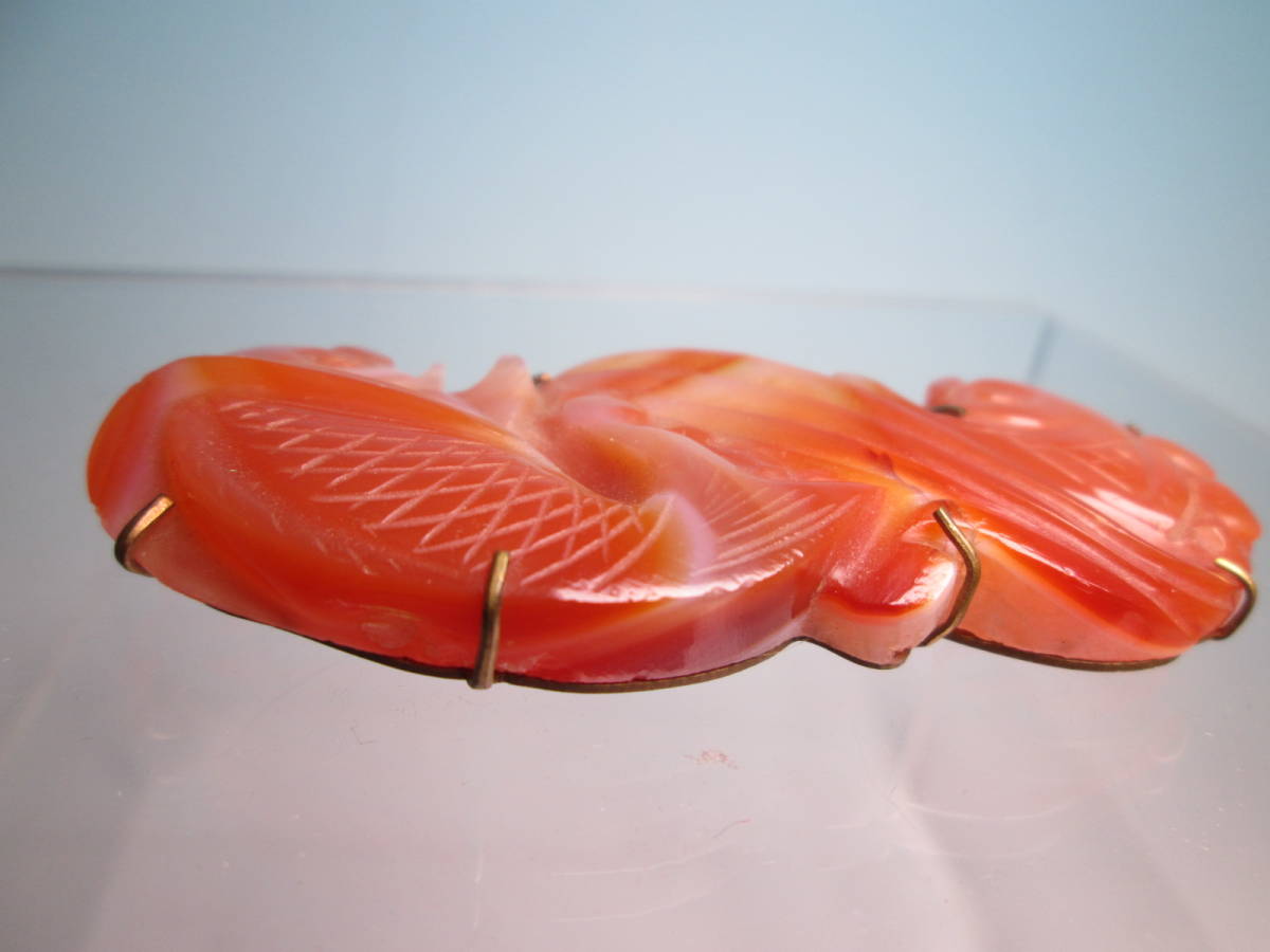 【江月】アンティーク・本瑪瑙 大振り 7,3cm 金魚2匹彫刻の帯留め 29,74g
