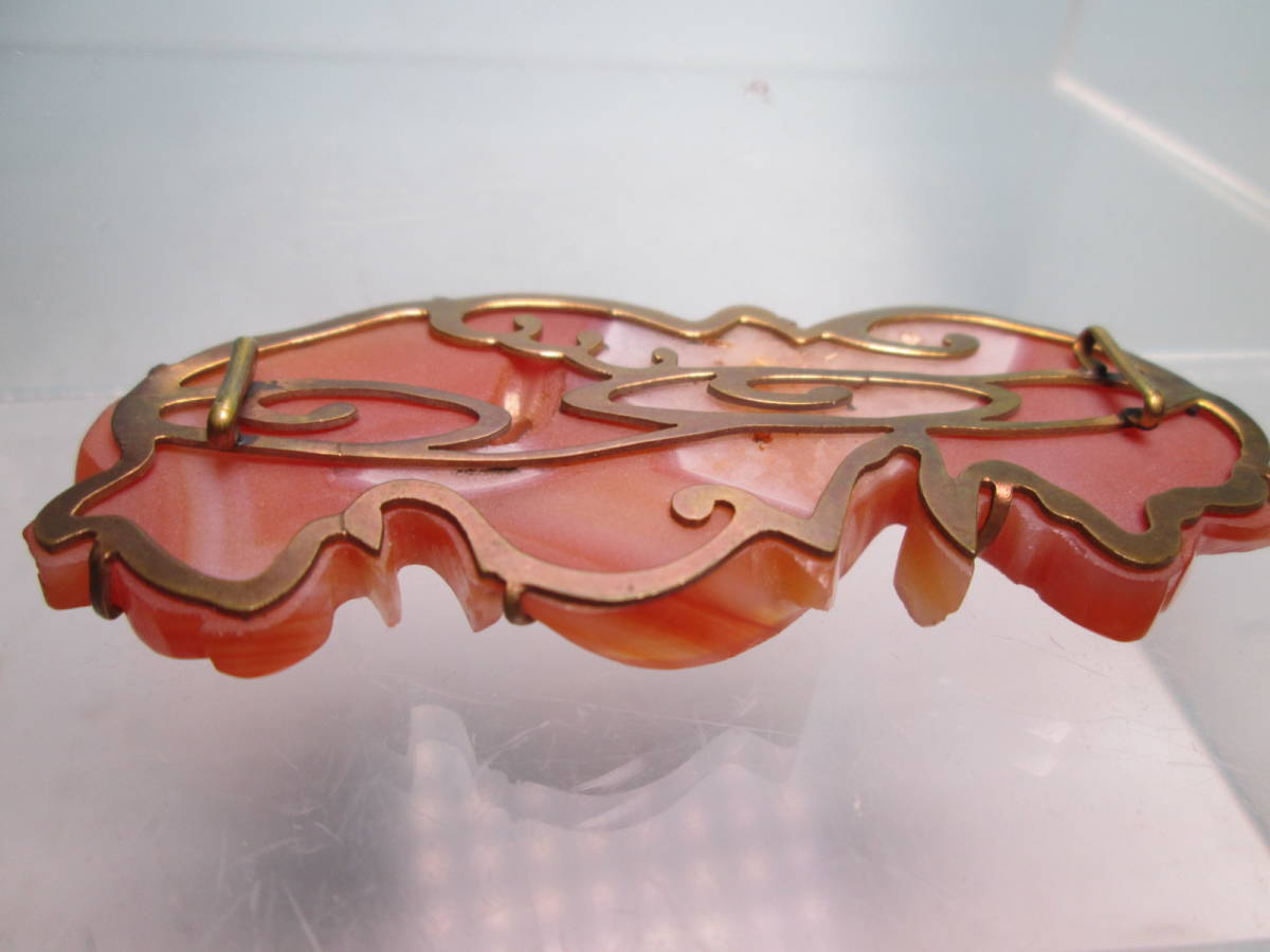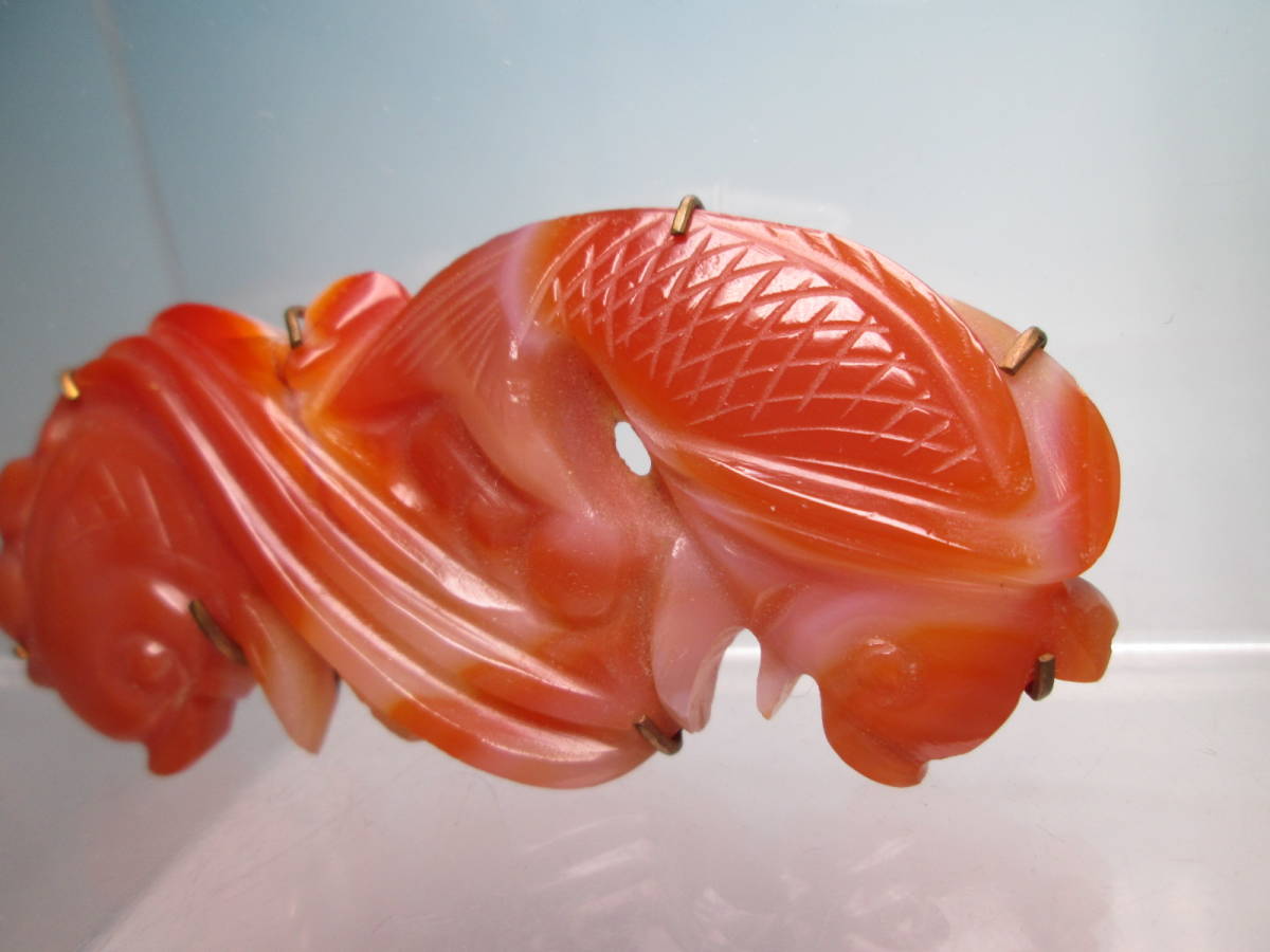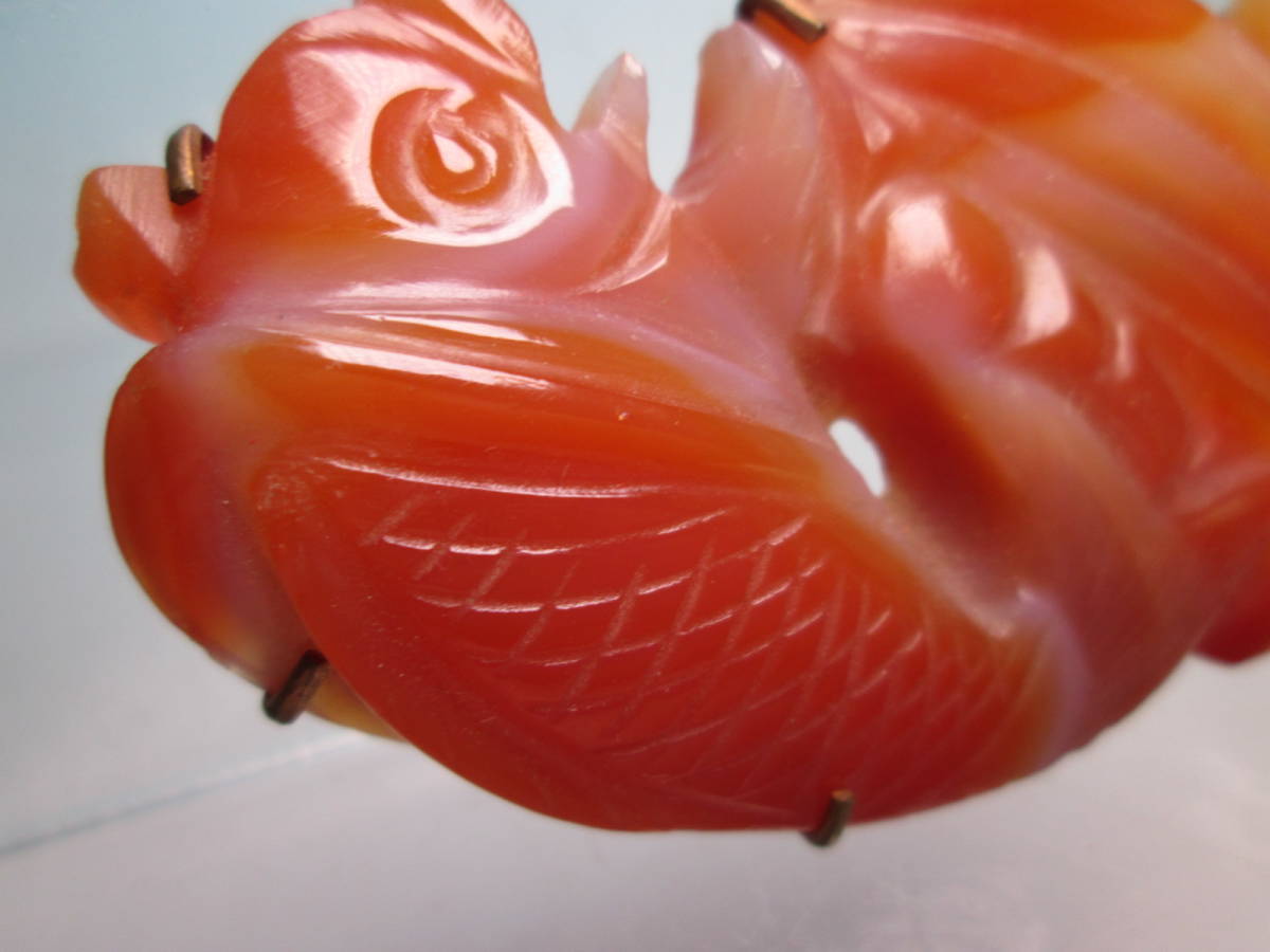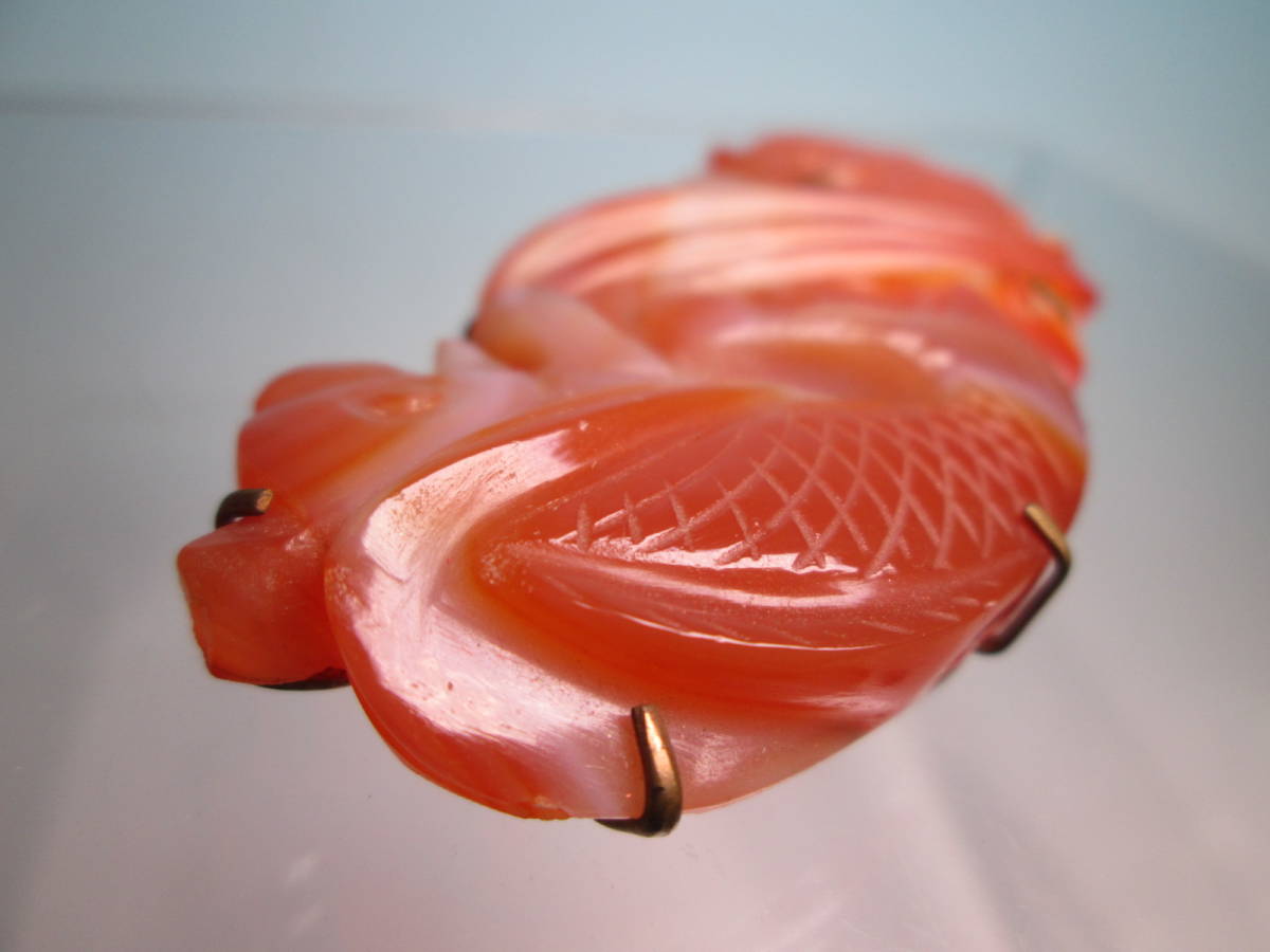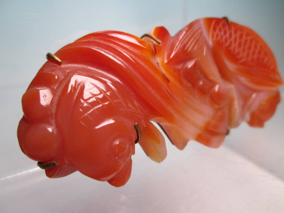 【江月】アンティーク・本瑪瑙 大振り 7,3cm 金魚2匹彫刻の帯留め 29,74g