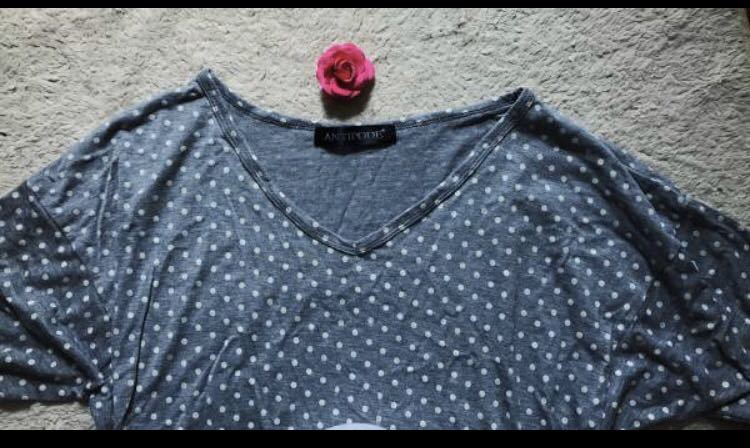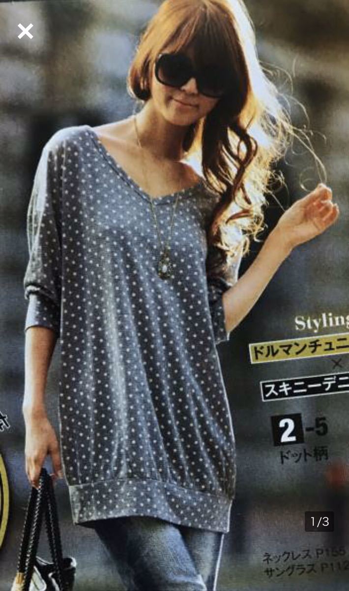 トップス ドルマンチュニック 水玉ドット ロング丈 Vネック オープンネック ヨガ 秋