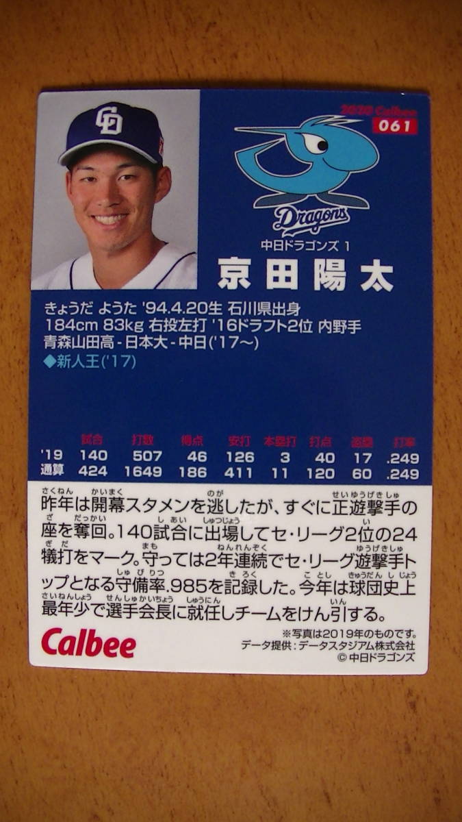 野球カード 京田陽太 中日ドラゴンズ 2020 Calbee 061