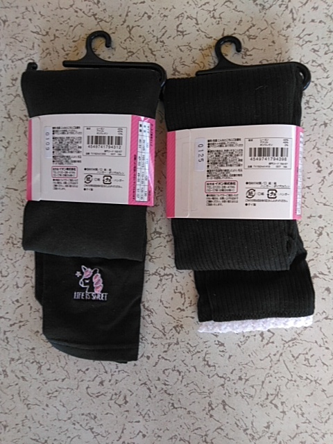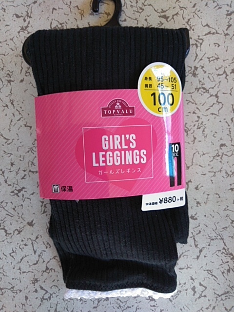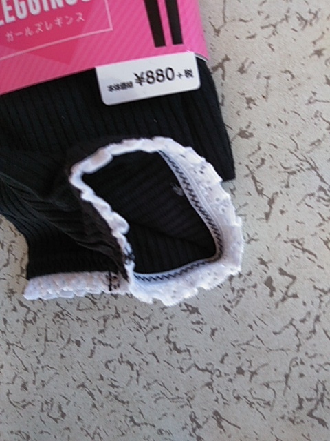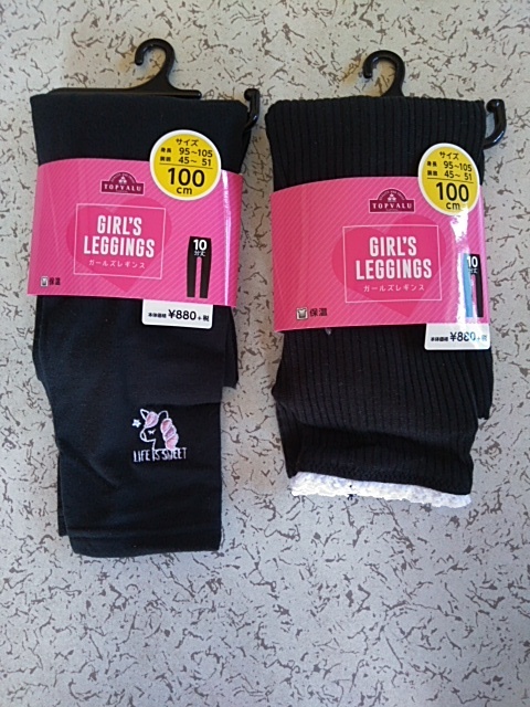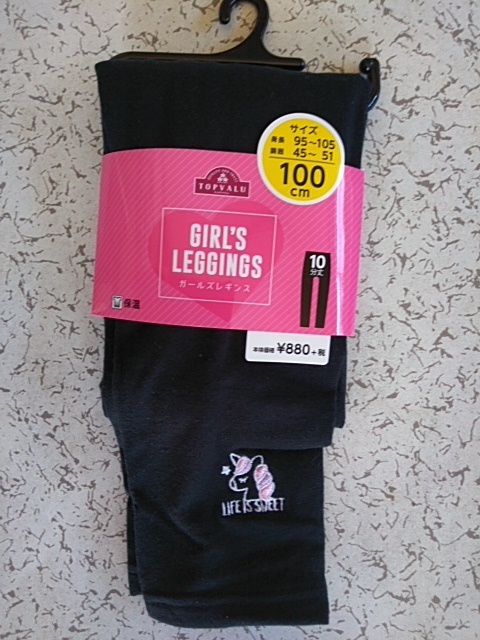 トップバリュ ガールズレギンス10分丈 2枚 (黒地・ユニコーン?&白レース)100サイズ