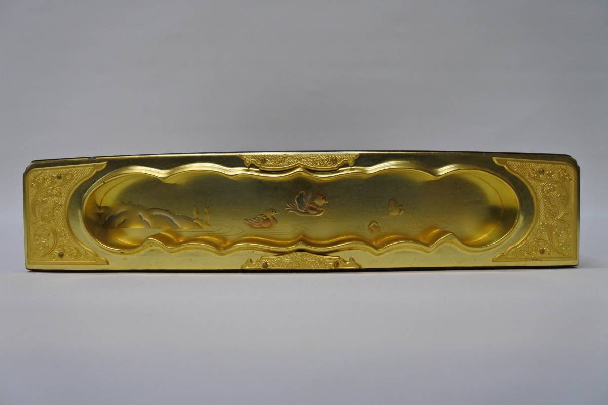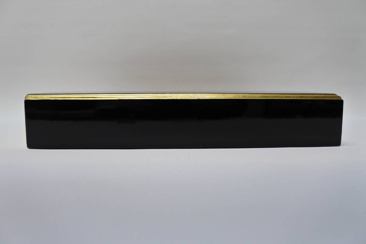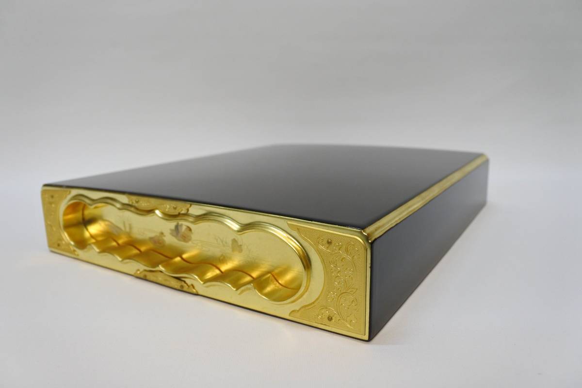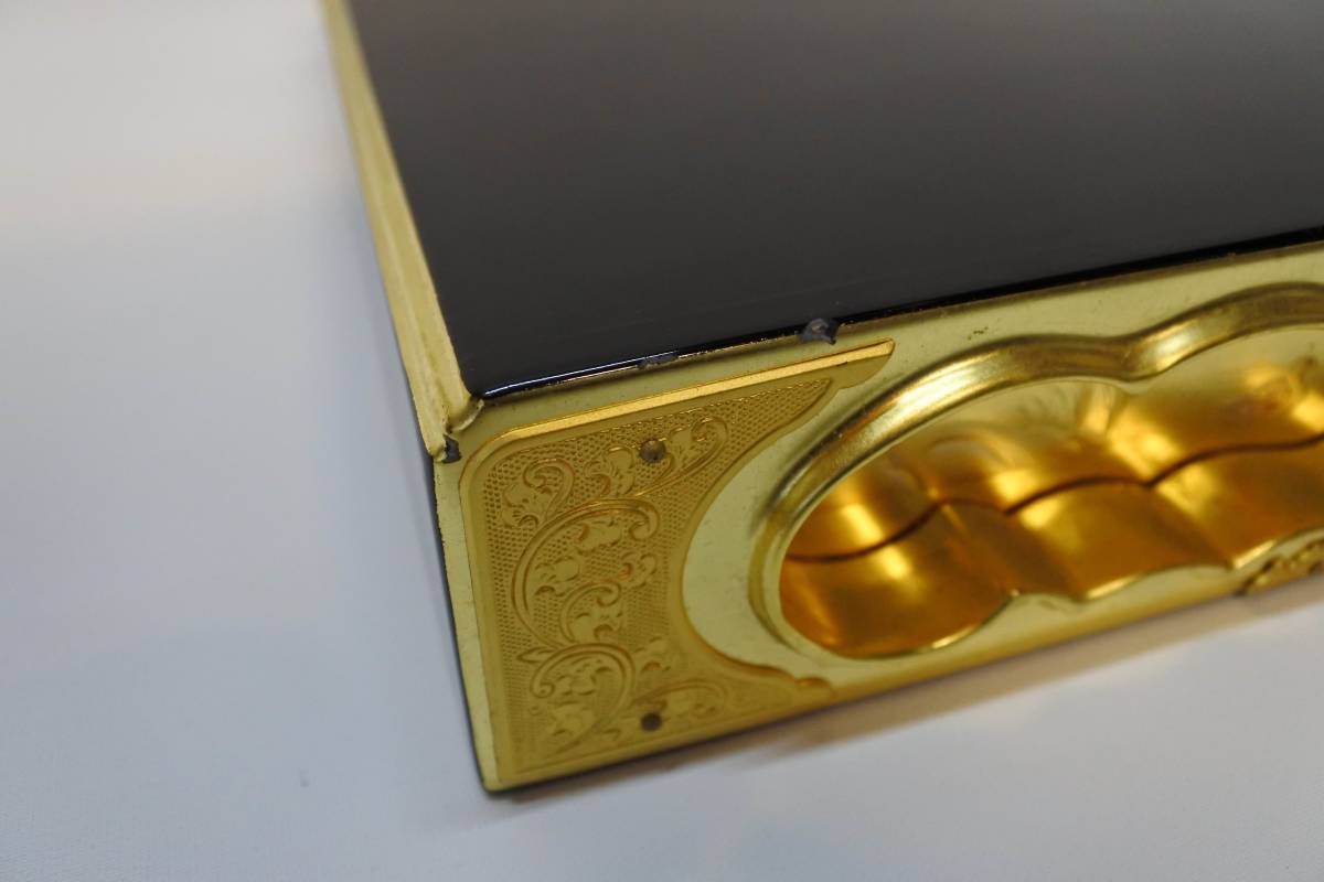 収集品 状態良好 経本箱 本金箔 蒔絵 木製 になります。 サイズは 高さ6㎝ 幅28㎝ 奥33.3㎝になります。 収集品ですので状態は画像にて確認して頂きノークレームノーリターンでお願いします。 |