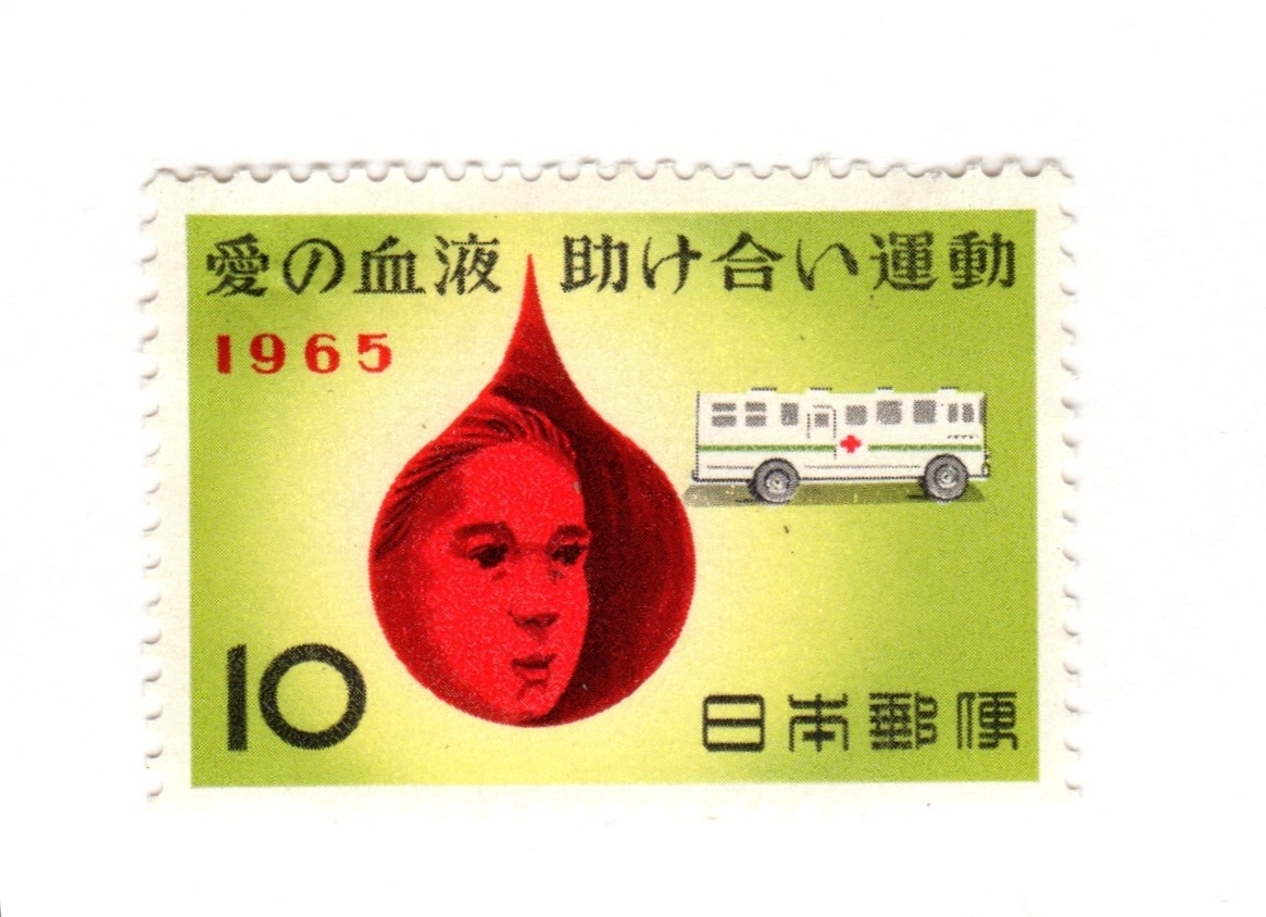 昭和40年1965「愛の献血助け合い運動/血液の中の子どもと採血車」10円切手・未使用【送料無料】「熊五郎の切手」00800350