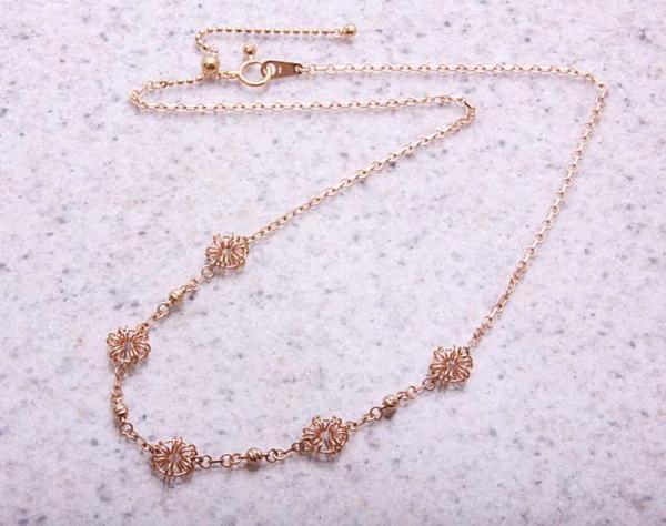 ネックレスは丸いパーツと楕円のパーツが交互に繋がれています。