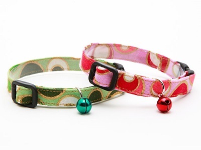 安全性のあるバックルがついた、ねこちゃん用首輪。
