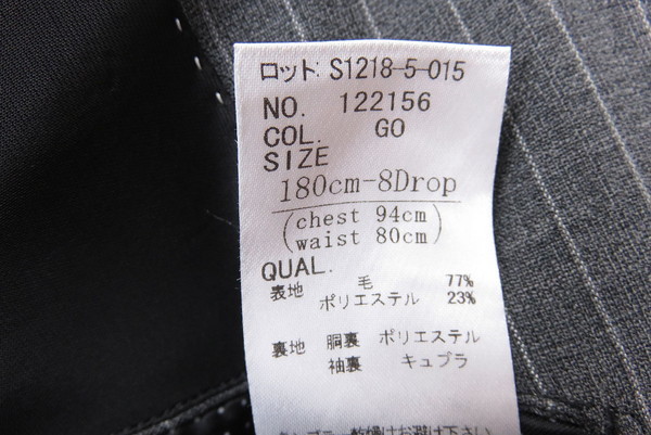 表記サイズ(ジャケット):180㎝-8Drop チェスト94㎝ ウエスト80㎝(Mサイズ相当)