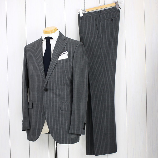 【送料無料】スーツカンパニー 春秋 シングルスーツ グレー ストライプ 180-8Drop M
