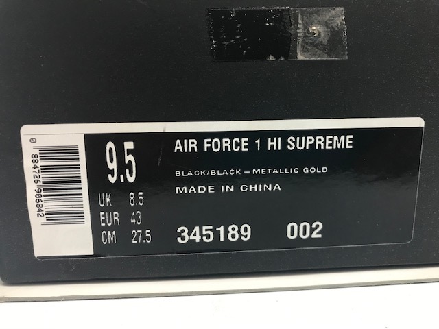 NIKE ナイキ AIR FORCE 1 HIGH SUPREME エアフォース ワン ハイ サプリーム BLACK/BLACK-MET GOLD 27,5cm