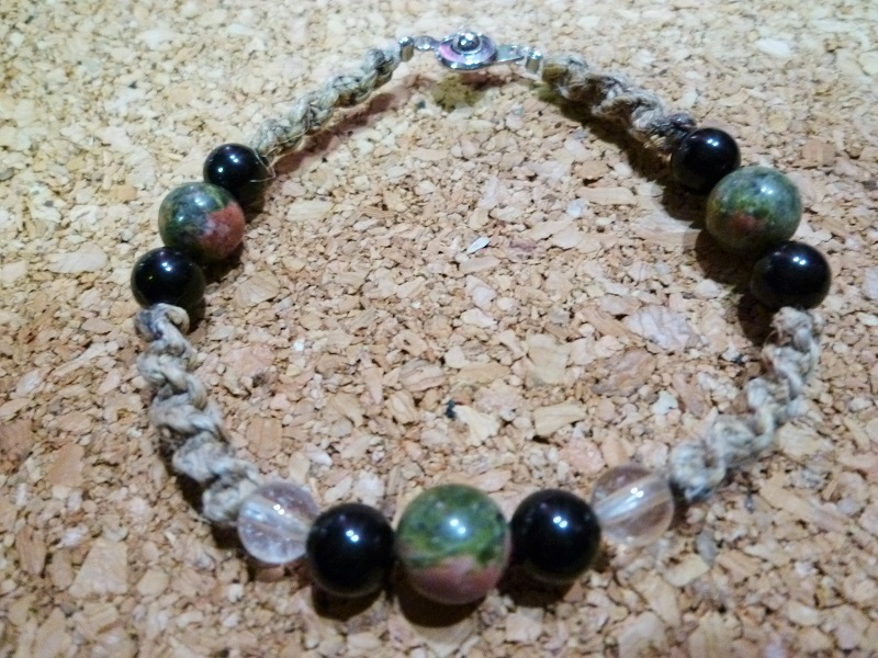 ユナカイト オブシディアン 水晶 マクラメ ブレスレット