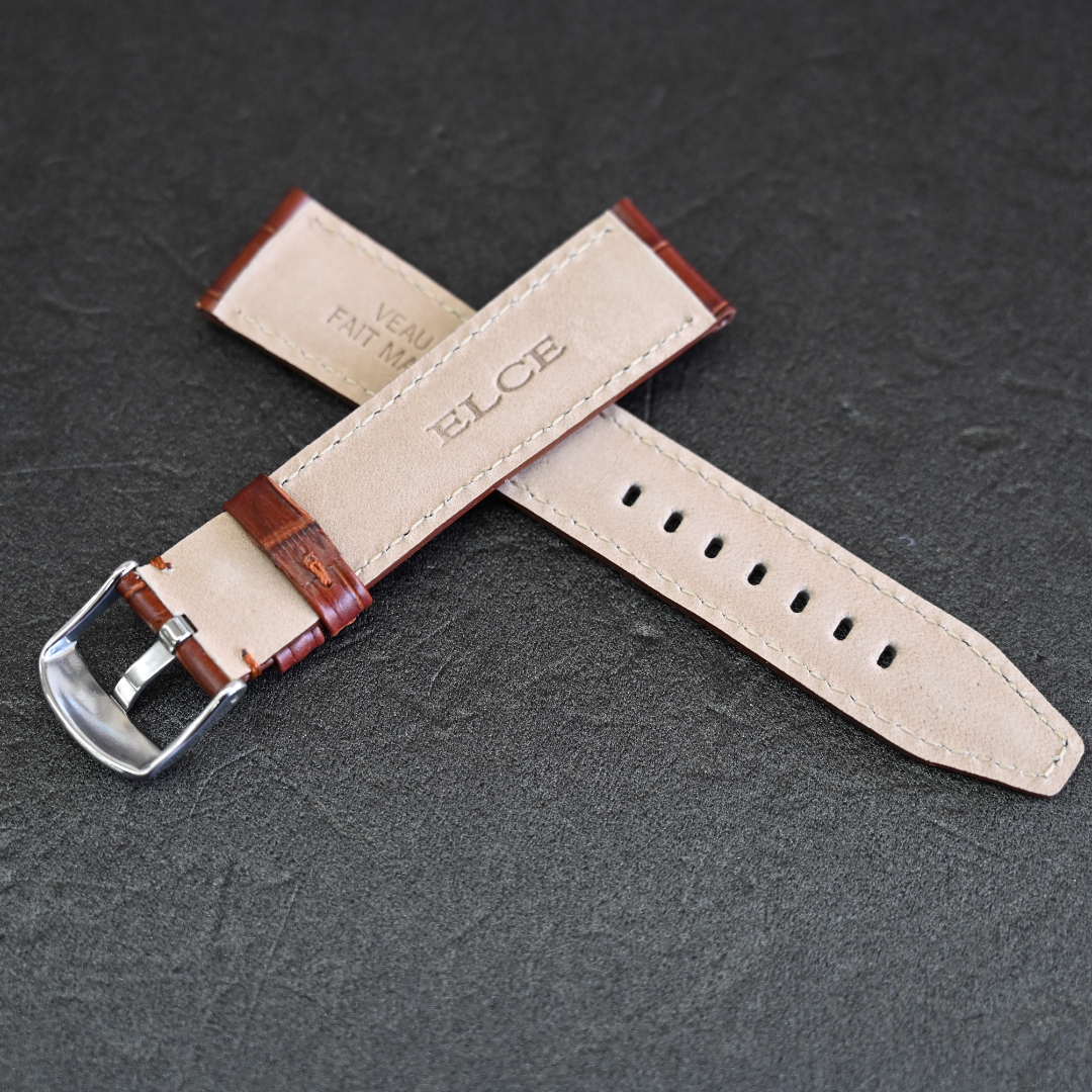 バネ棒付 送料無料★特価 新品★BAMBI ELCE 牛革バンド 20mm 時計ベルト ブラウン 茶色 竹符 高級志向★バンビ エルセ 定価税込6,600円