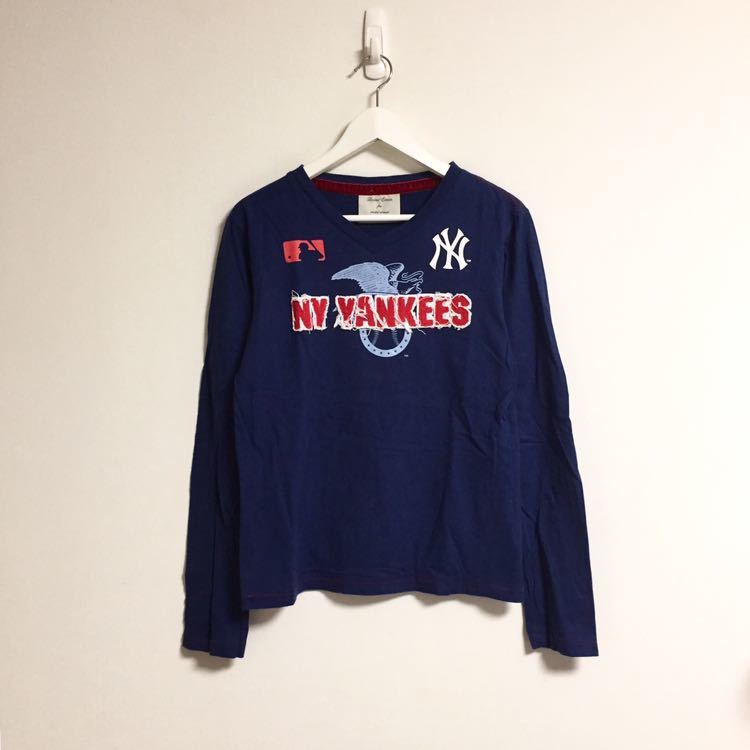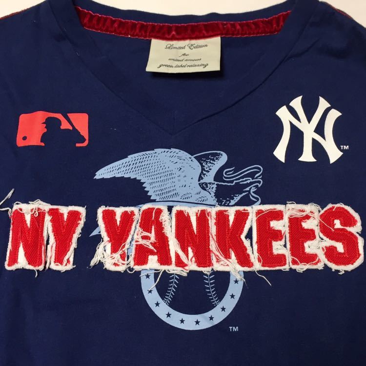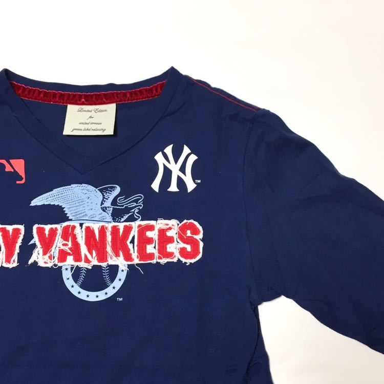 ◆Limited Edition for UNITED ARROWS Green Label Relaxing◆NY YANKEES ヤンキース Vネック ロンt ネイビー 長袖 tシャツ S ブルー