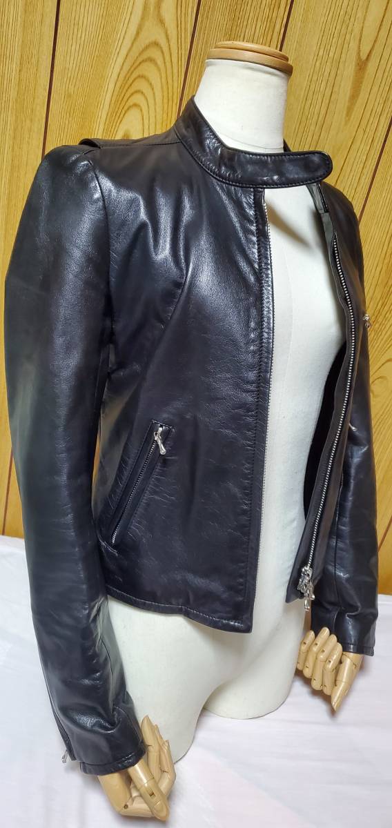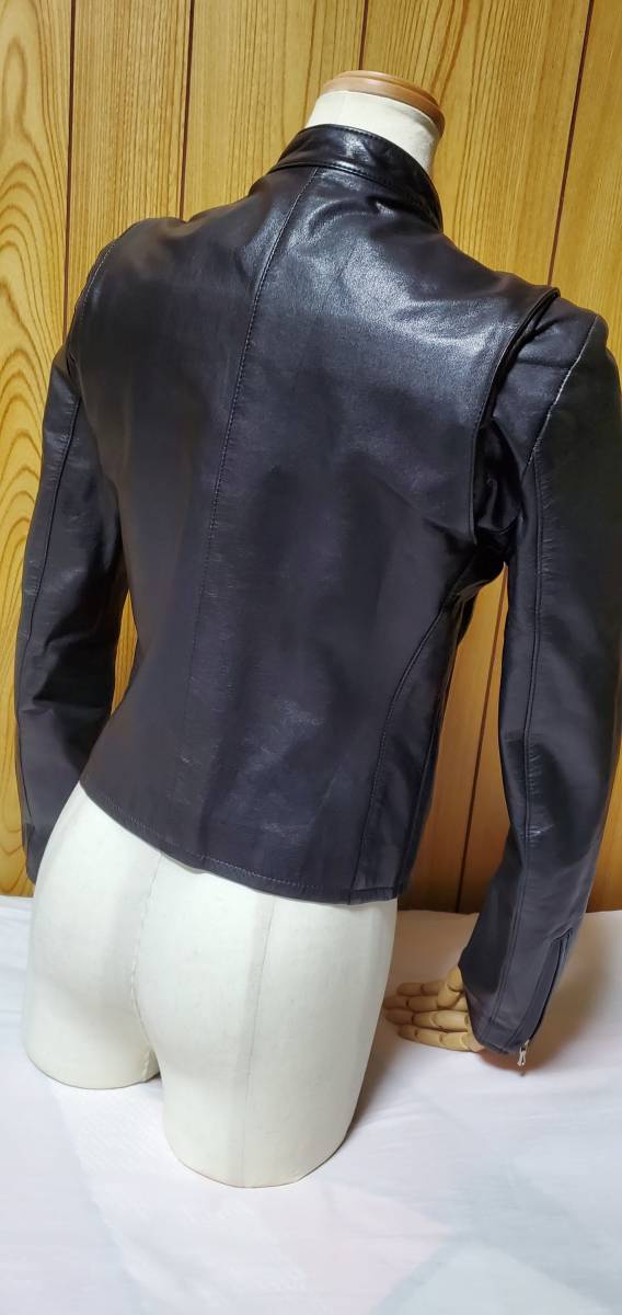 ≪サイズ 表記36(最小)「約」 肩幅(縫い目~縫い目)38cm 着丈(襟含み)後ろ50cm  身幅(脇下)40cm  袖丈(肩の縫い目~) 59cm  ※リチウムオム完全同型同素材 ririジップ×肉厚ラムレザー 男性でもまったく違和感無く着用可能です≫