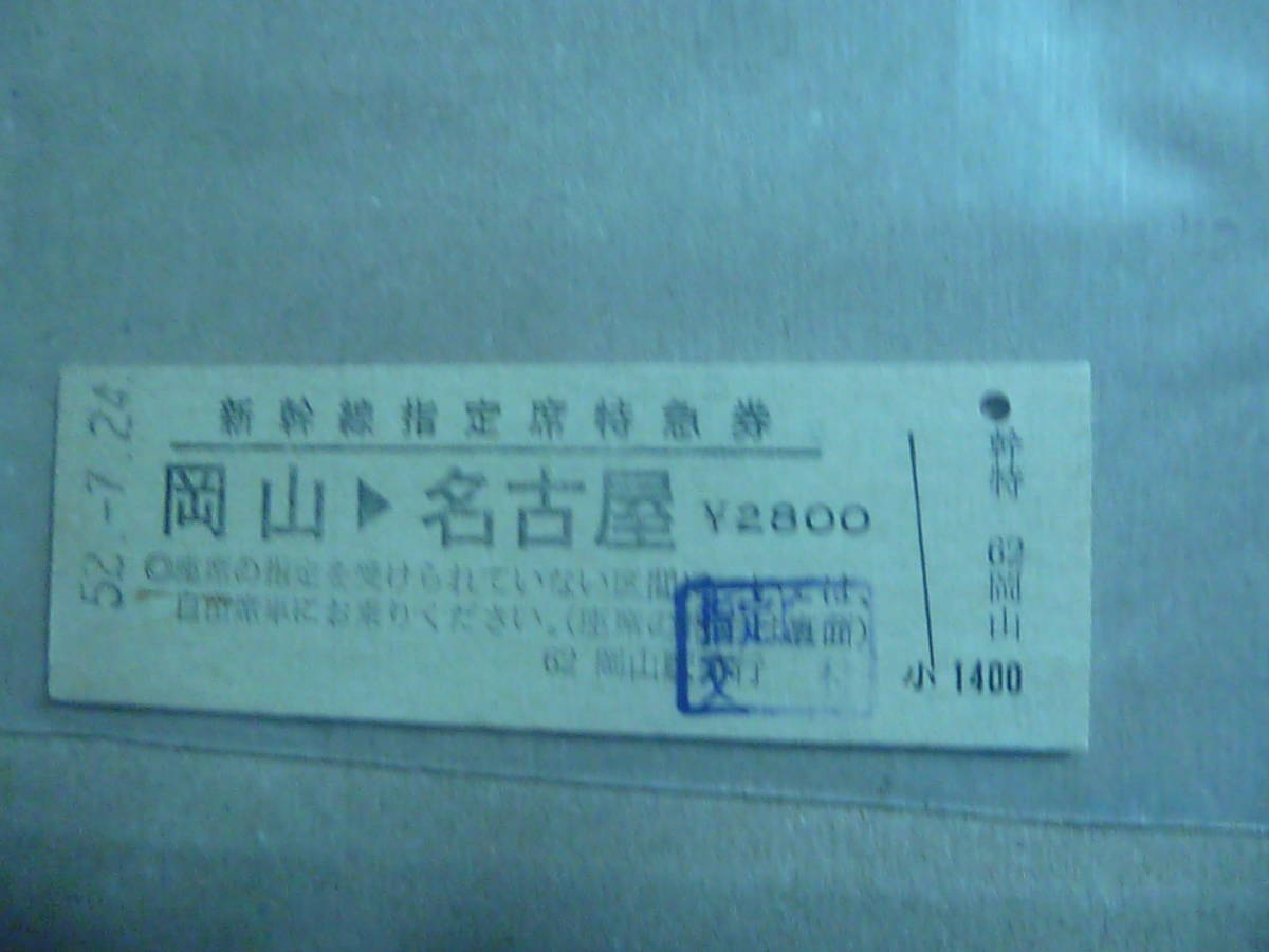 国鉄時代 新幹線 指定席特急券 岡山ー名古屋 発行 昭和52年7月24日 でございます。 |