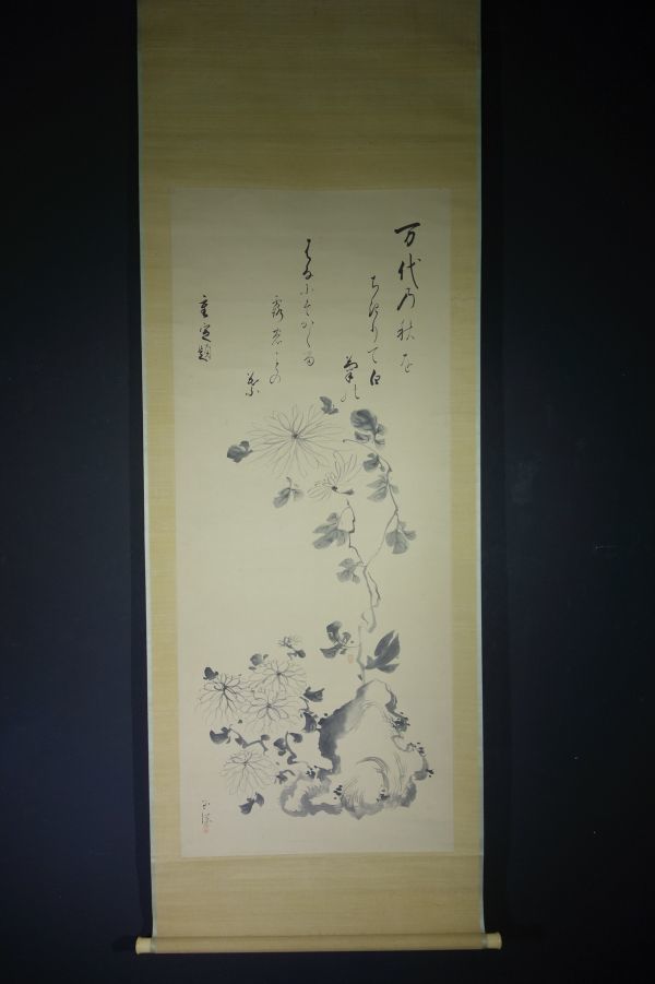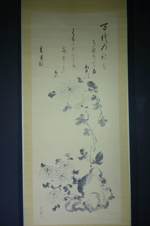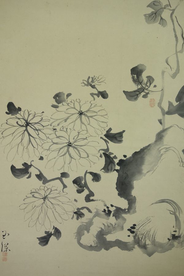 【模写】大雅の妻 池玉瀾 水墨菊画賛 A129二ムFdds