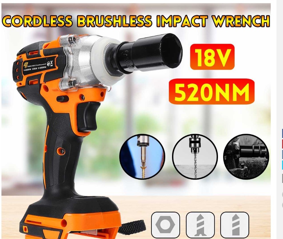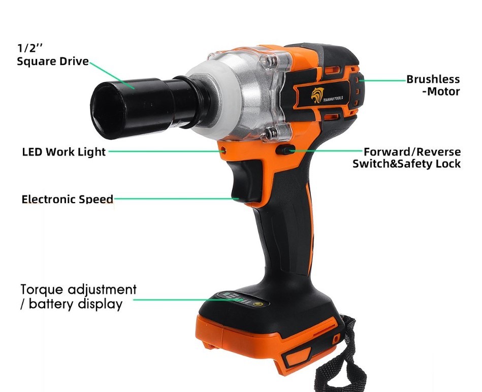 "K0462 520 N。 m ブラシレス インパクトレンチドライバー ツール 1/2 コードレス 電源 ドライバ 交換 マキタ DTW285Z 18V "