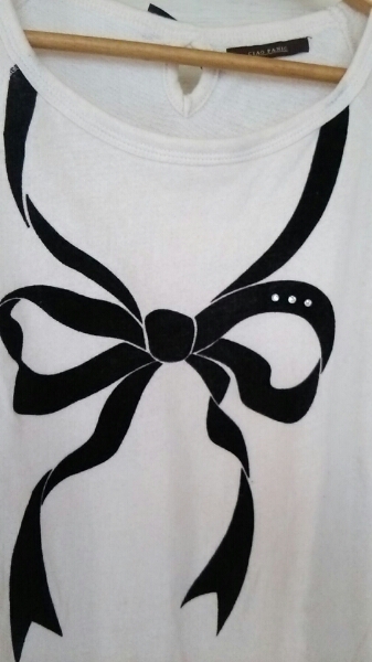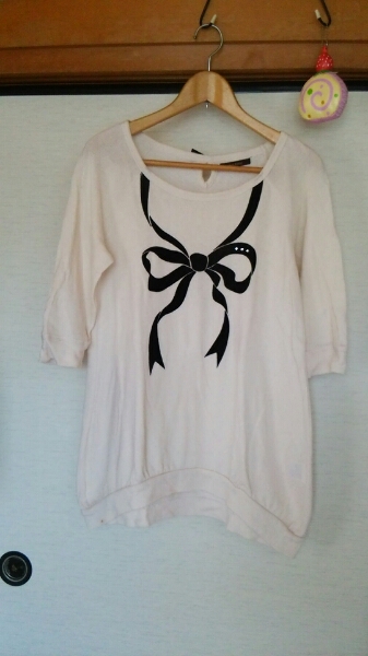 注意事項 :リボン柄にダイヤつき 背中はリボンがついています。ゆったりしていてワンピ-ス チュニックにも活躍できます。
