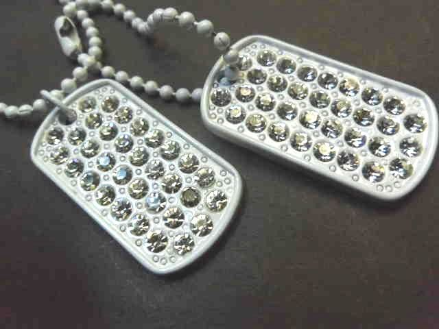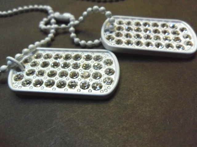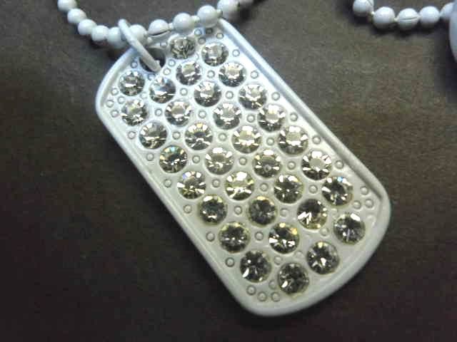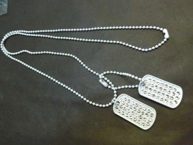 ドッグタグ!ネックレス!白!ラインストーン付き!