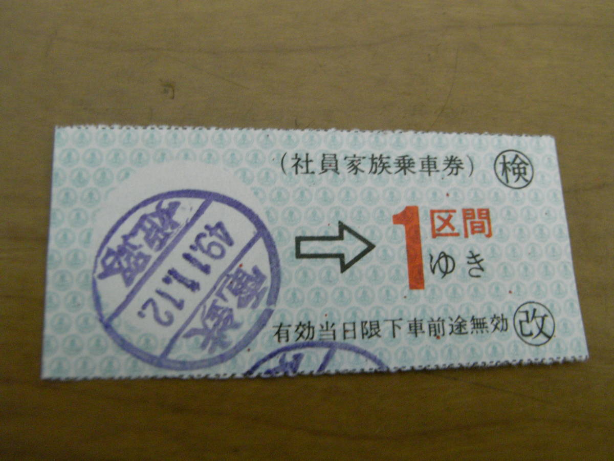 山陽電鉄 社員家族乗車券 電鉄姫路→1区間ゆき 昭和49年11月12日