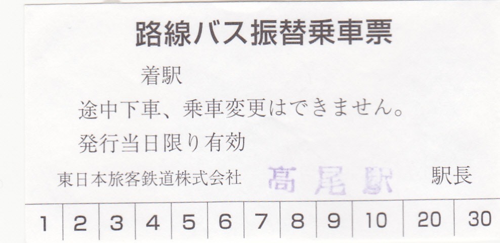 【JR東日本】高尾駅発行 路線バス振替乗車票