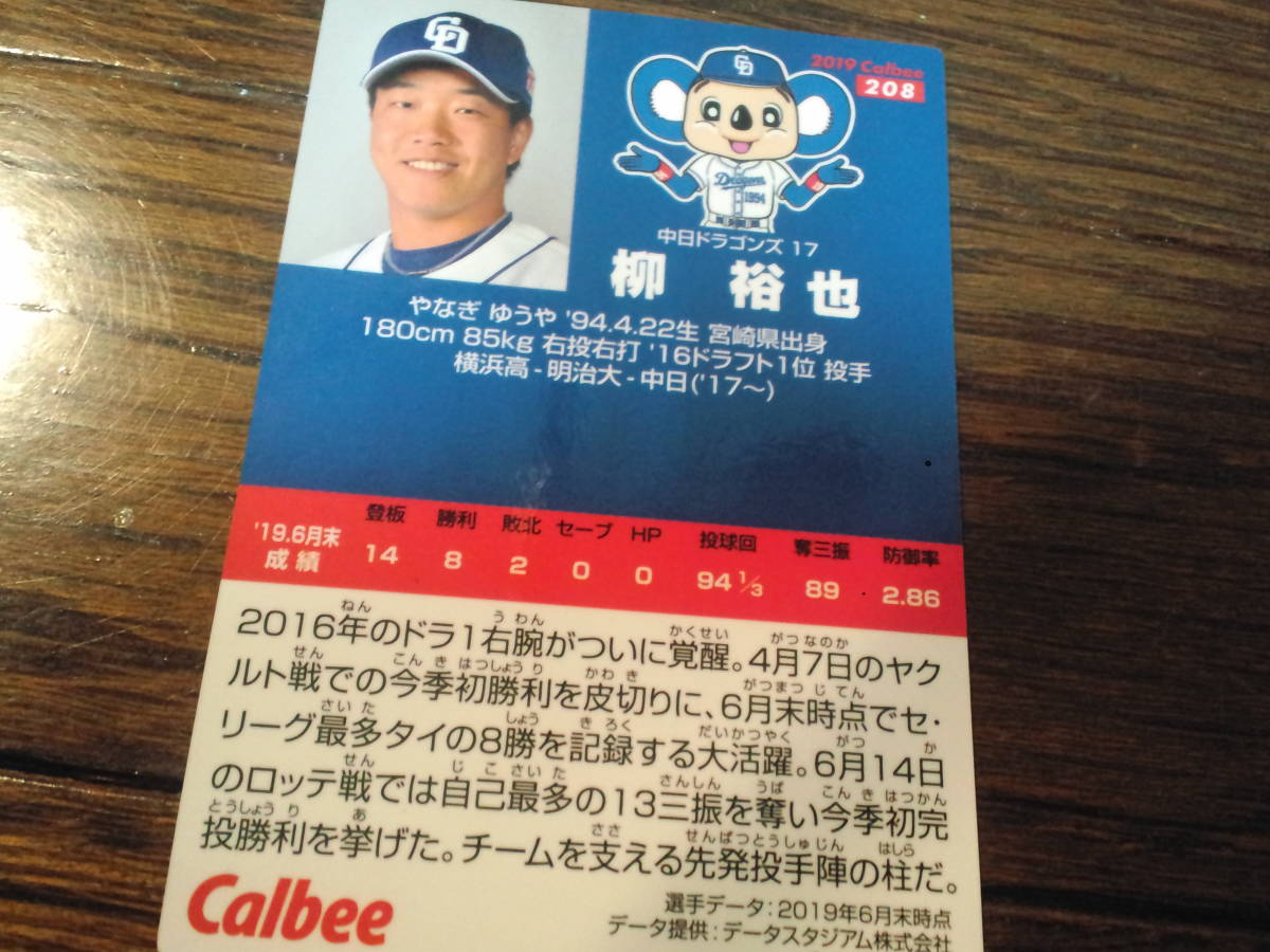 [同梱可]★柳 裕也(中日ドラゴンズ)★レギュラーカード(208)☆2019年カルビープロ野球カード第3弾