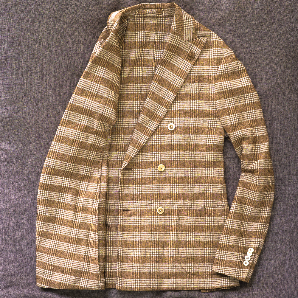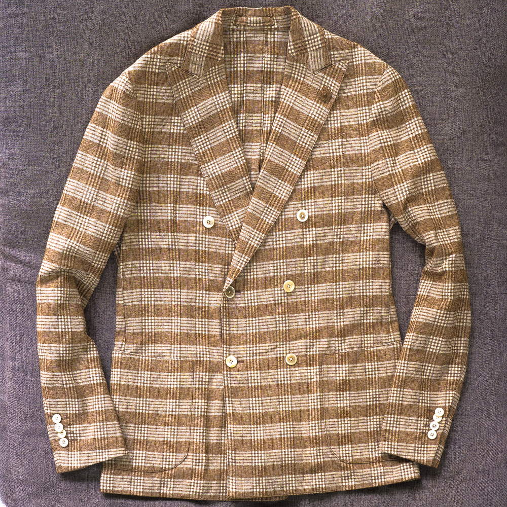 新品★ LARDINI グレンチェック ダブルブレスト 48 春夏 EASY ダブル ジャケット ラルディーニ イタリア製 送料無料