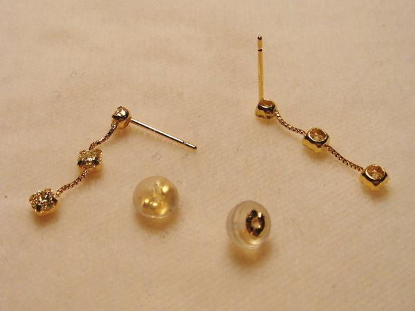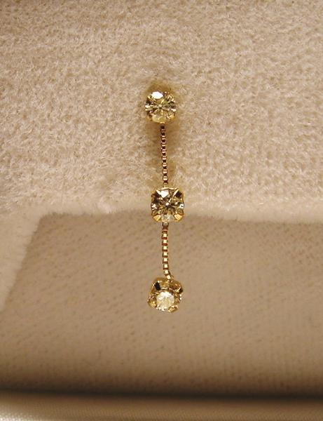超特別価格のダイヤピアスはほんの僅かにフェイントイエロー気味ですが輝きが良く、イエローゴールドにぴったりです。