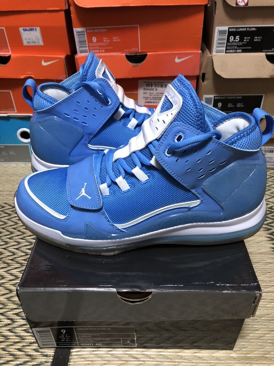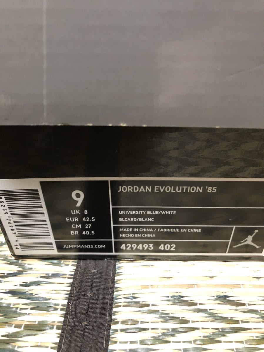 Nike Jordan Evolution '85(ジョーダン)ノースブルー白 us9(27cm)新品箱有です。2011年製、年月経過の変色、劣化はあると思います。正規店購入、本物です。