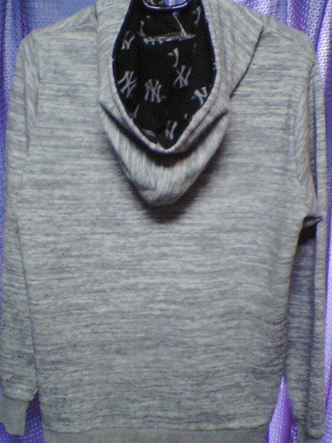 【New York Yankees】ニューヨーク・ヤンキース レディース用フード付きパーカートレーナー上着 M 灰色 薄手生地★メジャーリーグ MLB