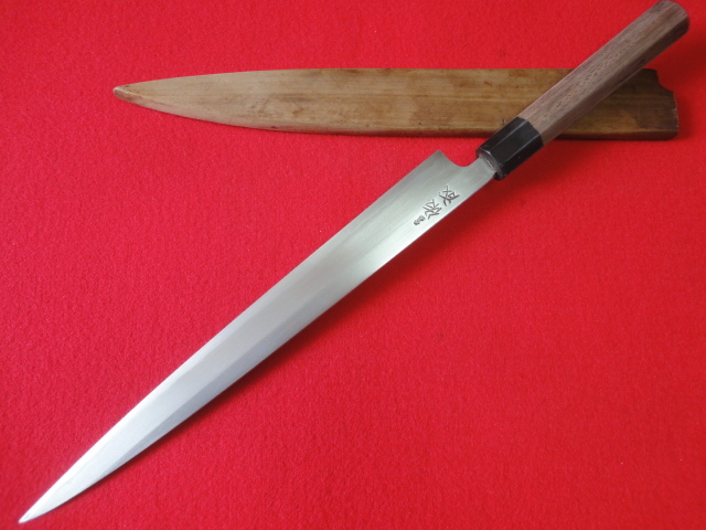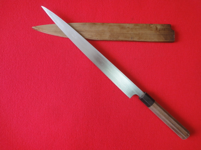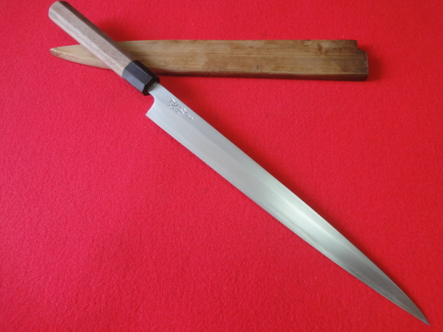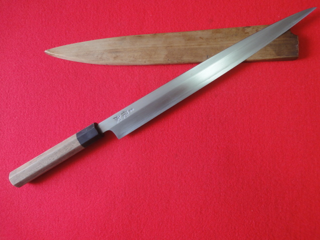 【佑成】刺身包丁 ※八角柄 刃渡31.7㎝ 全長47.3㎝ 峰厚4.3㎜ ※鞘付 ※片刃 中古品 全国一律送料1100円