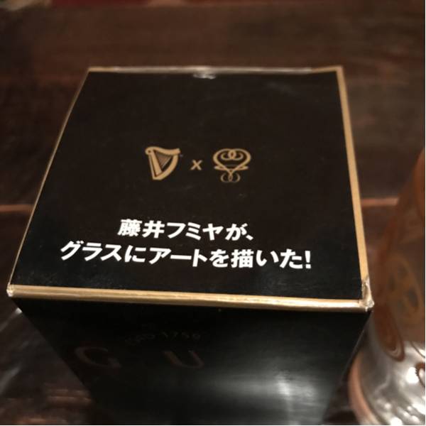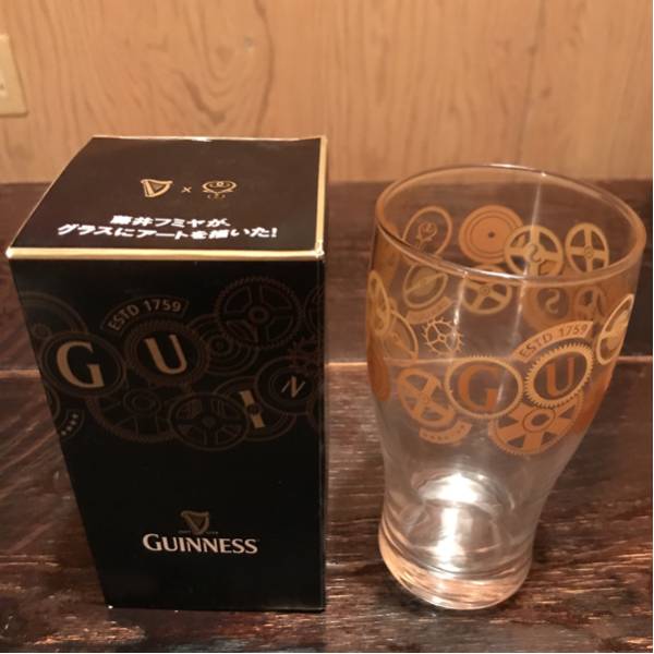 送料サービス!藤井フミヤが、グラスにアートをら描いた!ギネス グラス 東洋佐々木ガラス製 新品 未使用 レア、