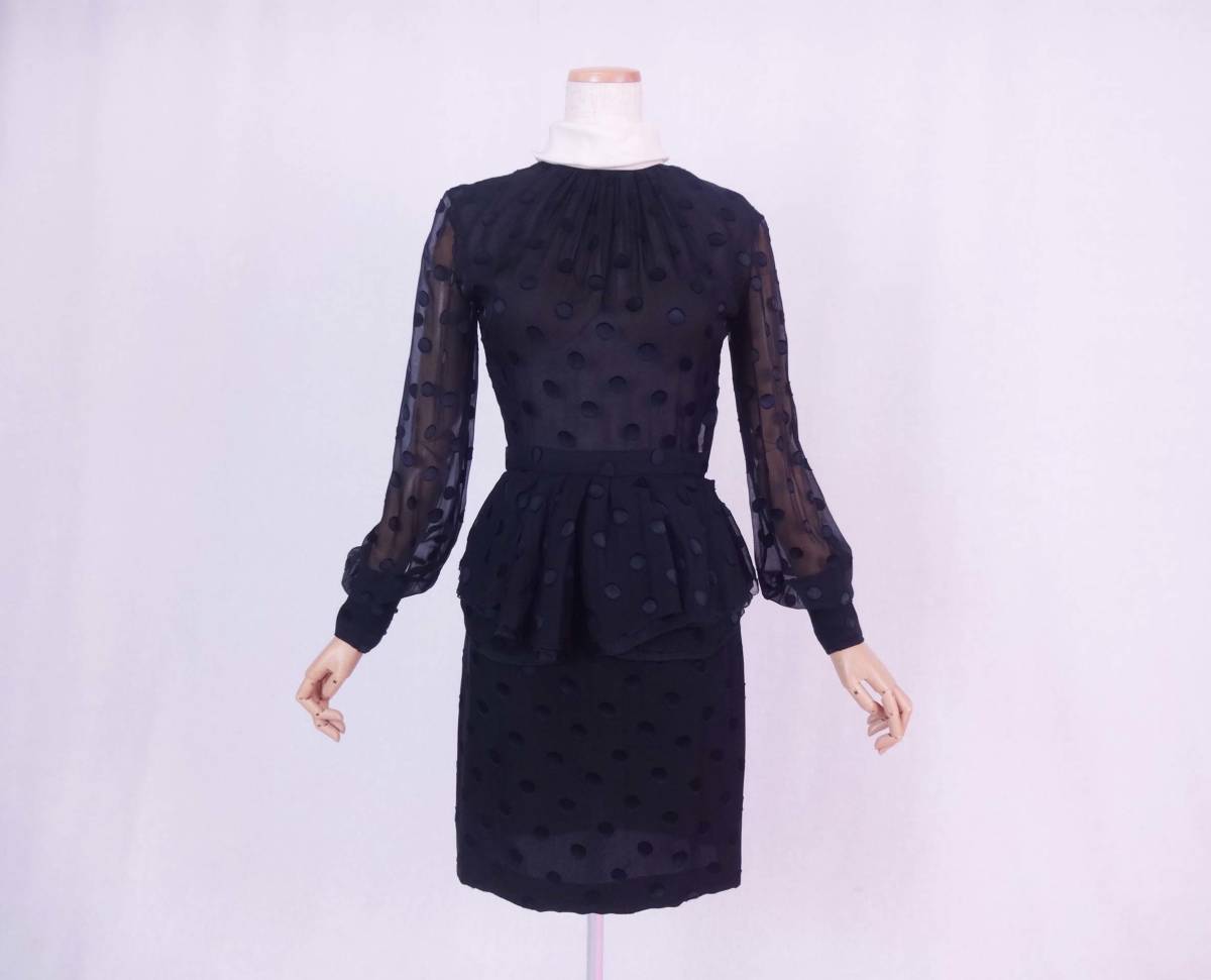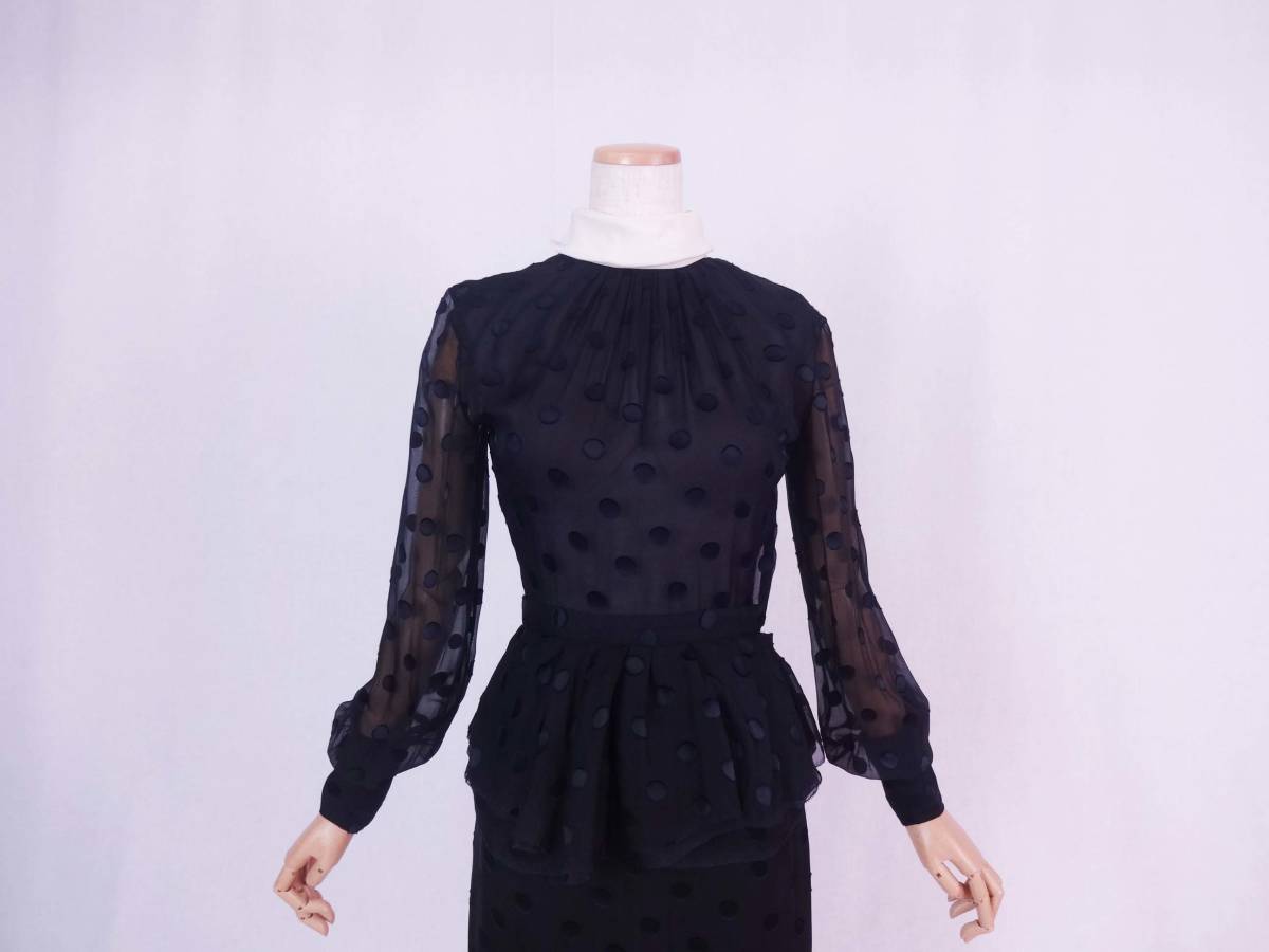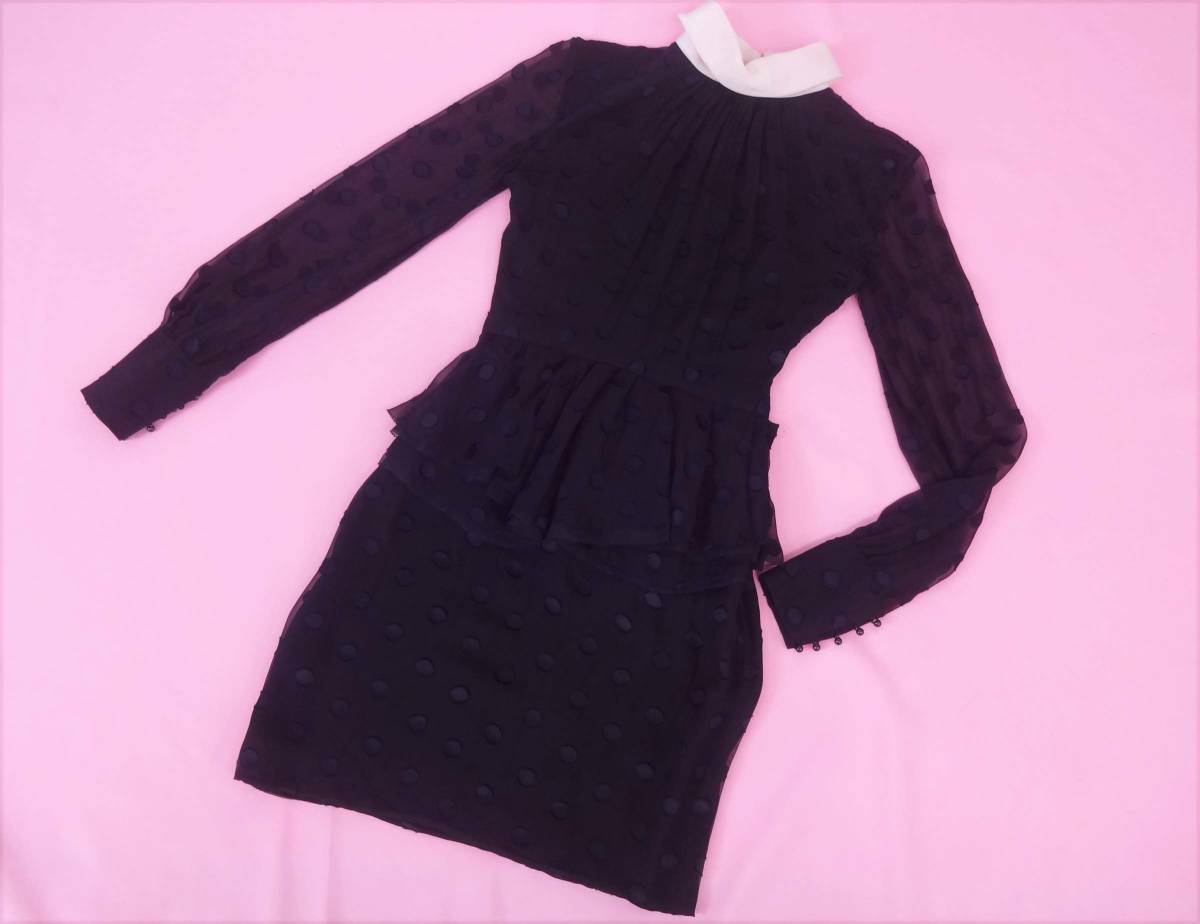 JASON WU ジェイソンウー 白襟べプラムシフォン ワンピース ブラック ポルカドット地模様