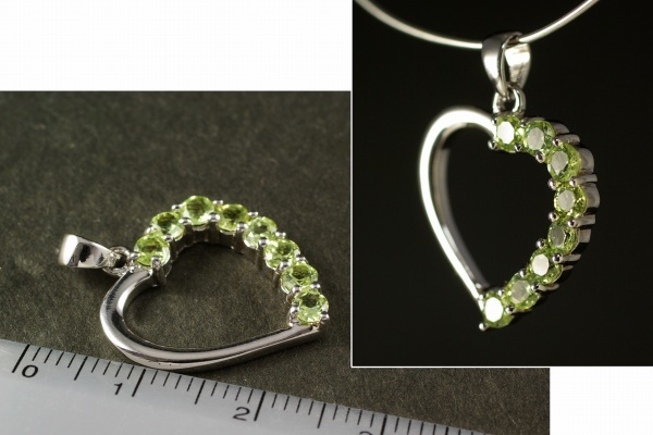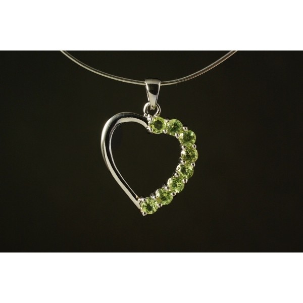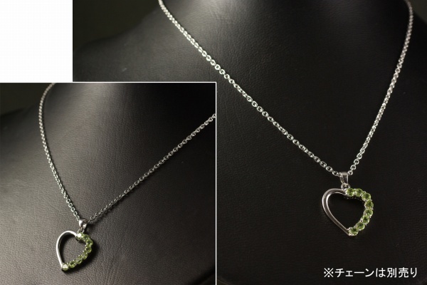 シルバーでハートを形取ってぺリドットを散りばめたオシャレなデザイン。