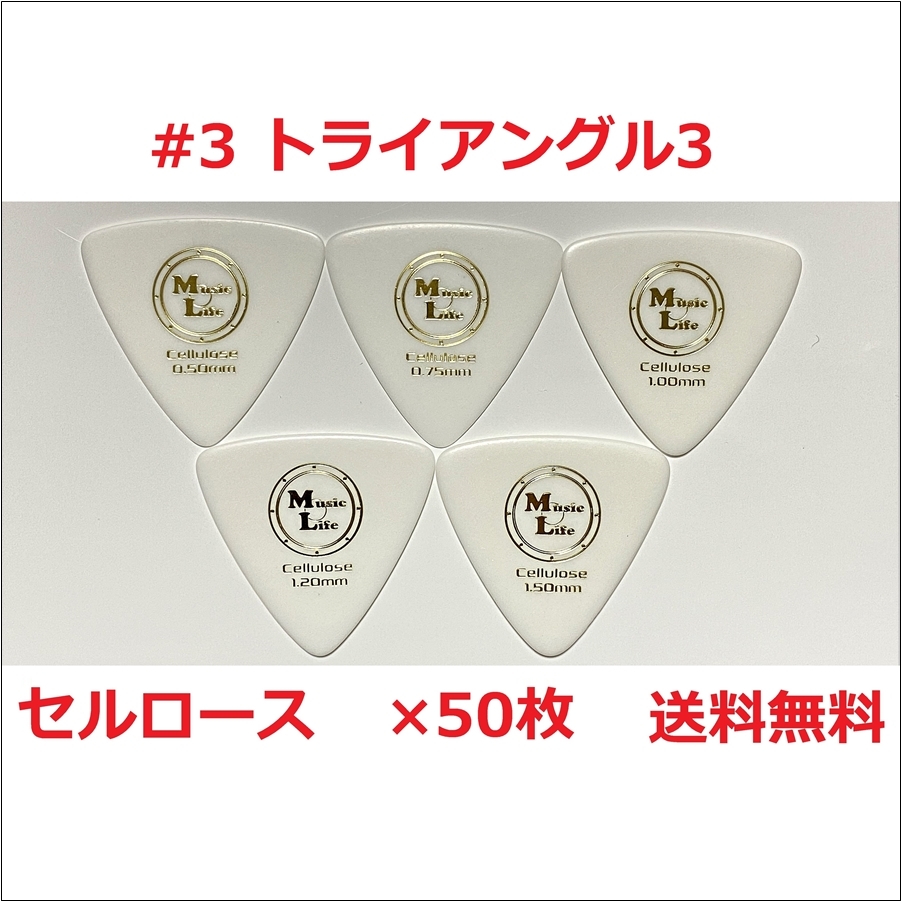 【MLピック】#3 トライアングル3 Celllose(セルロース)ピック 【1.00mm×50枚】送料込み