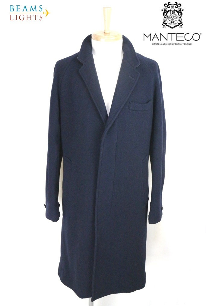 ■美品■イタリア製■BEAMS LIGHT×MANTECO ビーム スライツ 秋冬 ウール スリム 細身 ナロー コート M ダークネイビー 濃紺