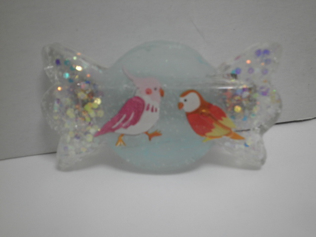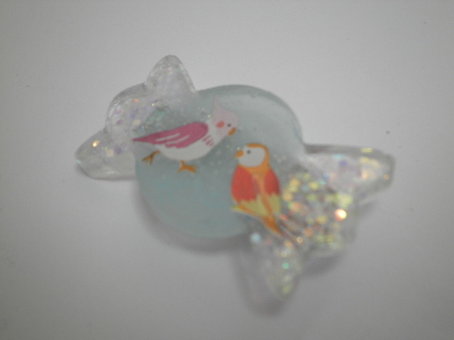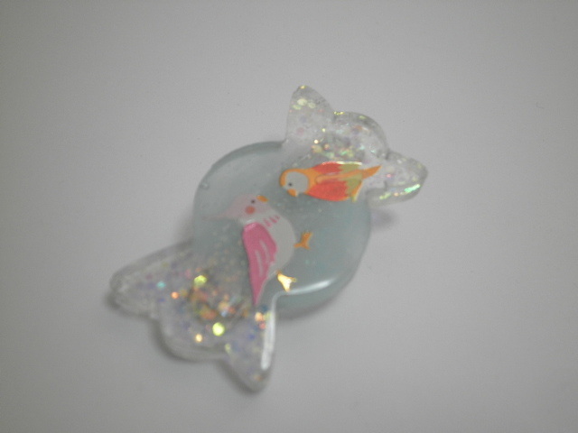 ハンドメイド・レジン ☆オカメインコ&インコ(イラスト)☆ キャンディ型ヘアクリップ