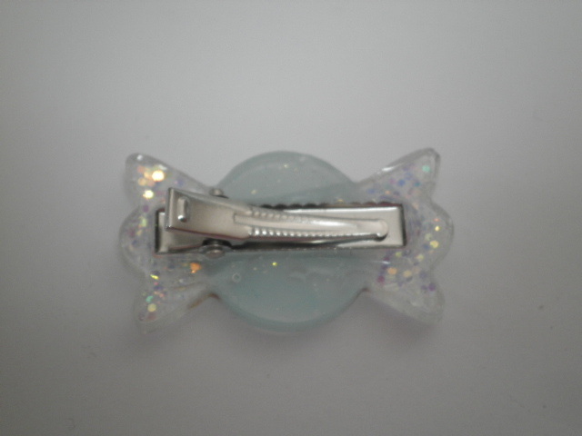 サイズ2.2X4.2cmの、キャンディ型にレジン液を固めて、ヘアクリップを作りました。