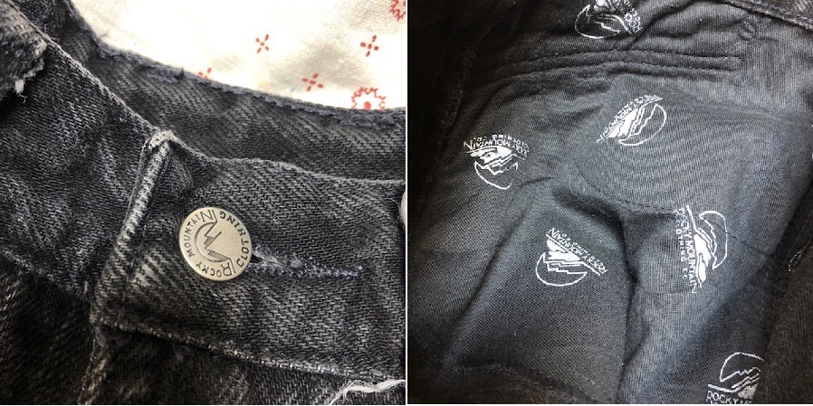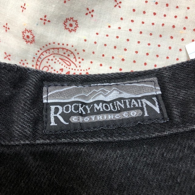 USA古着 80s~90s デザイン ブラック太ヒッコリーデニムパンツ 9/10 ROCKY MOUNTAIN 黒ヴィンテージ ユニセックス ワイドテーパード ●33