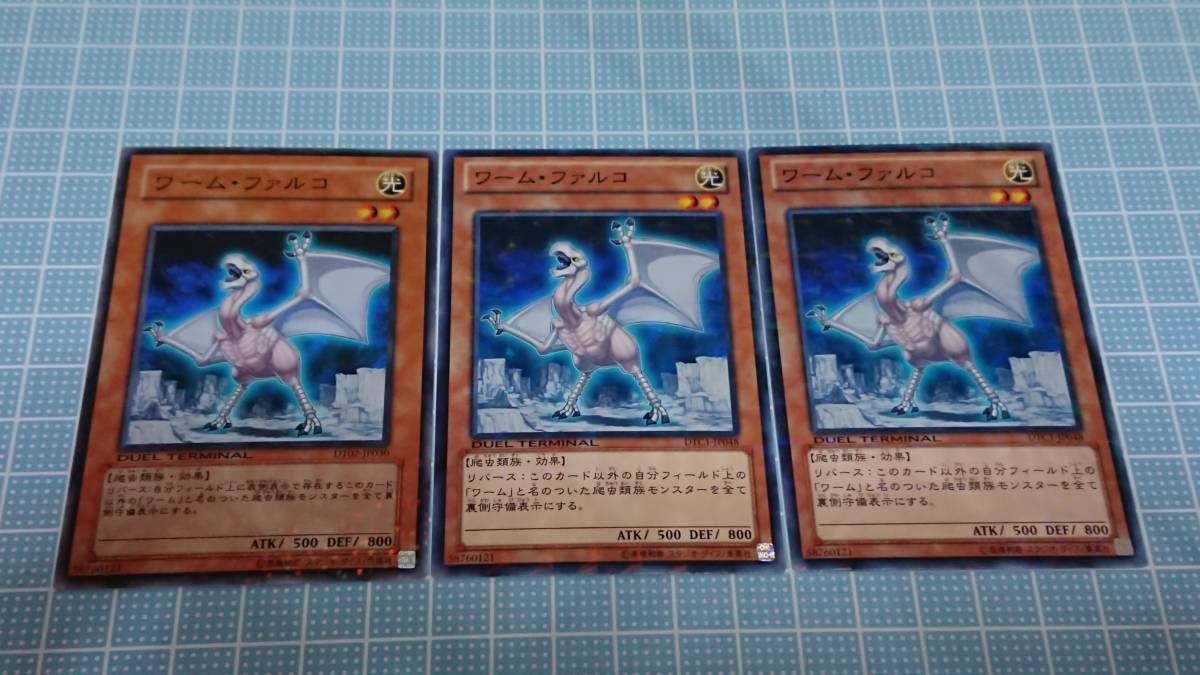 遊戯王 ワーム・ファルコ ノーマルパラレル3枚 DT02-JP030(1枚)DTC1-JP048(2枚)となります。