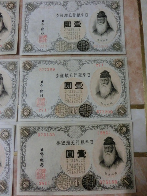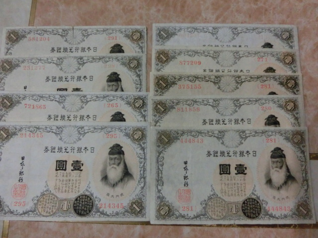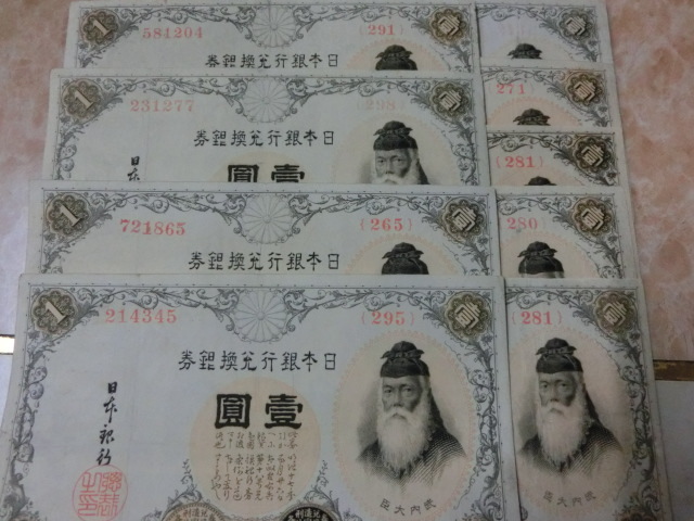 ★ 大正兌換銀行券1円 アラビア数字1円 200番台 9枚セット ★ No.90