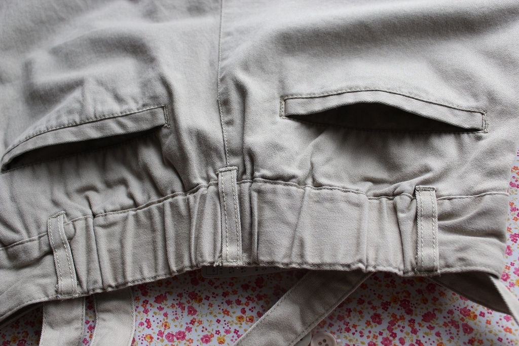 ウエスト部分には、後ろに平ゴムが入っています。ウエストに伸縮性はありますが、+5cm~8cmくらいです。