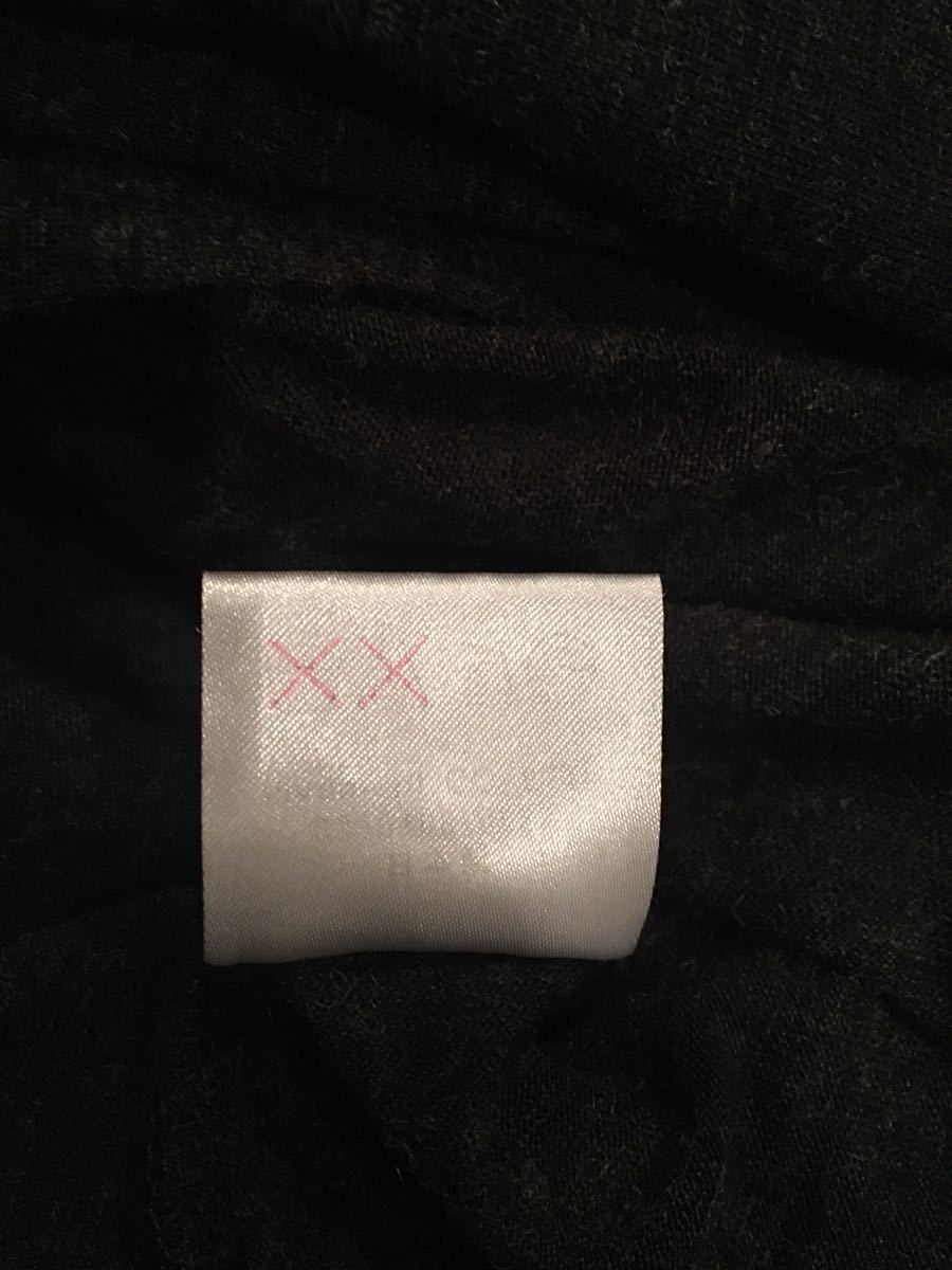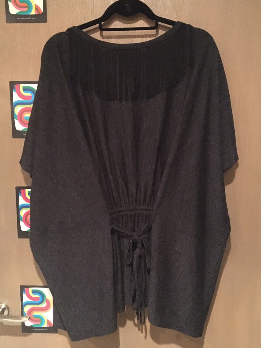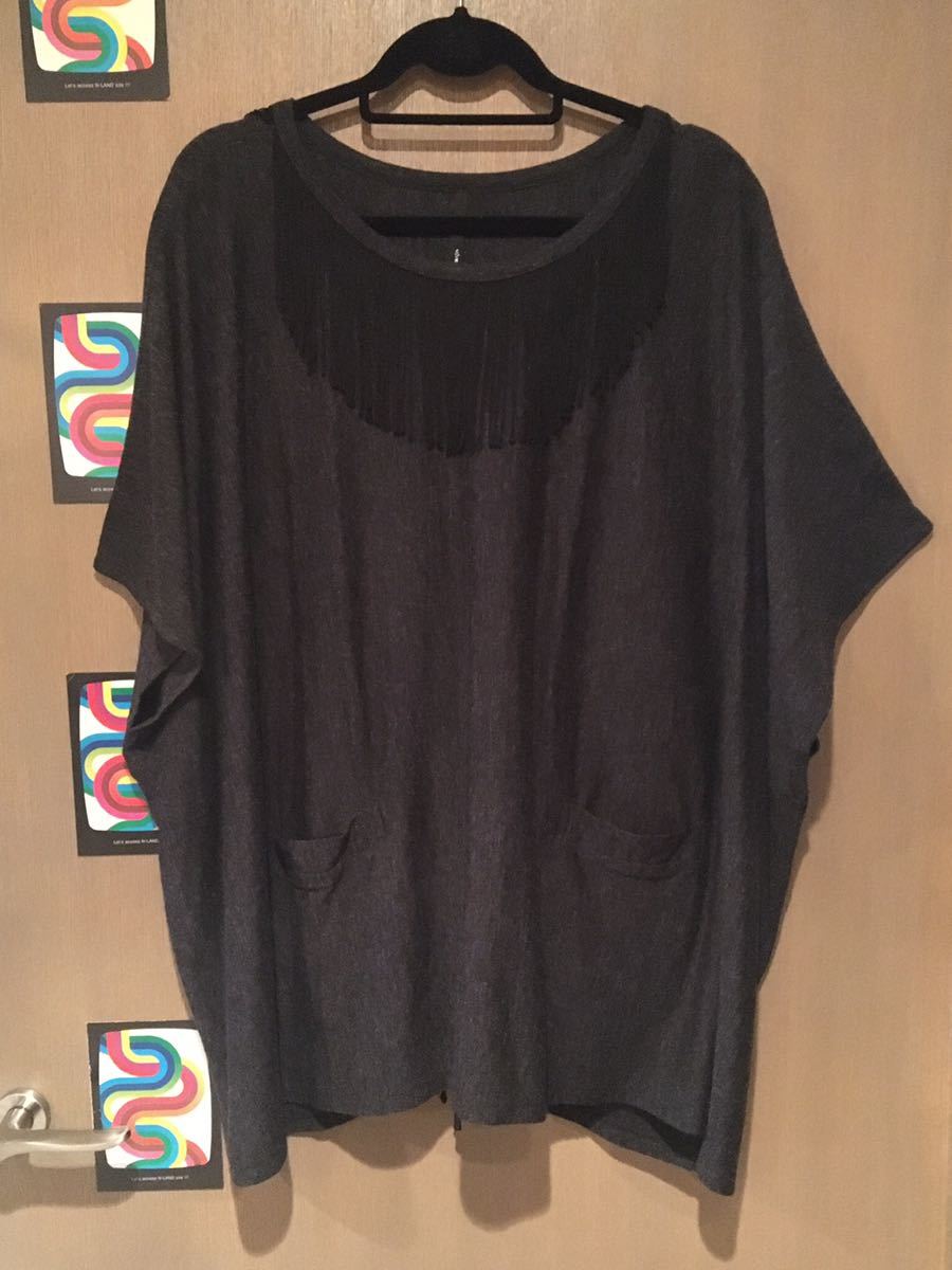 サイズ表示なし、素材表示アクリル80 %毛20%、実寸最大身幅100㎝(撮影時の状態で採寸)着丈76㎝、ダークグレー×黒です。