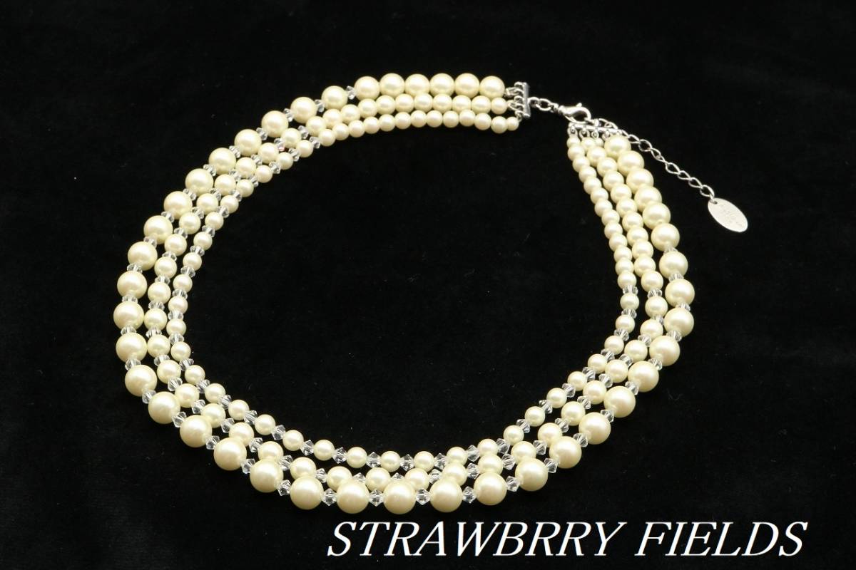 【WA45】STRAWBRRY FIELDS ストロベリーフィールズ パール ビーズ 3連 ボリューム ネックレス ホワイトパール パーティ【送料全国一律198円】