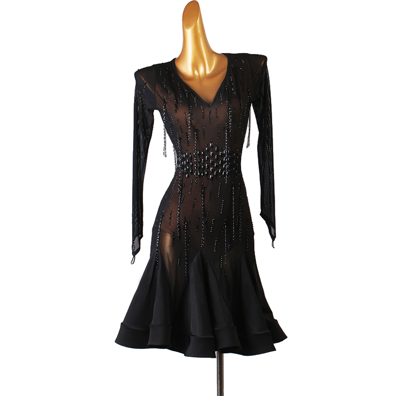 新作 サイズ調整可 レディース社交ダンスラテンドレス キラキラ飾り センスがよいデザイン ブラック