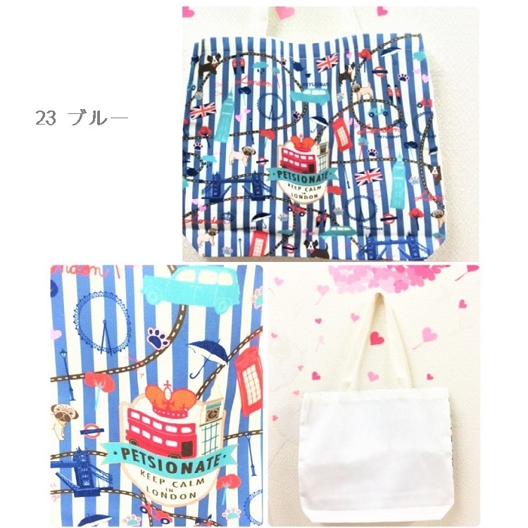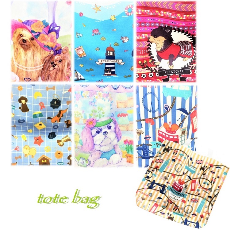トートバッグ PE No.18 19 20 21 23 24 エコバッグ キャンバス生地 おしゃれ かわいい 犬 猫 モチーフ パステルカラー 丈夫