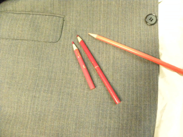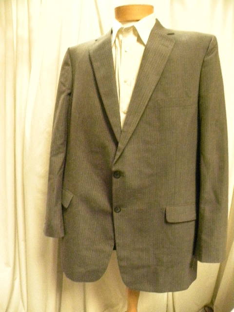 色はかすかにブルーが入ったグレー地にライトグレーとレッドのストライプ 。素材表示がありませんがウールのようで春夏秋に着用いただけそうです。