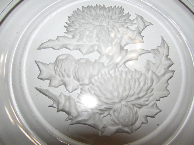即決・(旧家・蔵出し)(作家物・手彫りたんぽぽ模様のガラス皿)貴重珍品