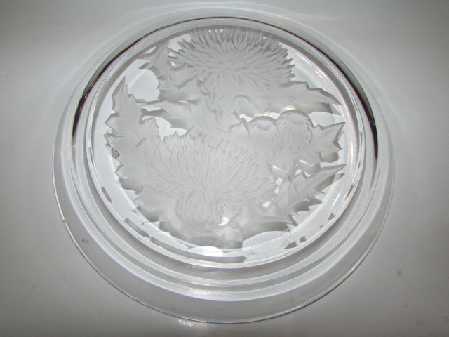 即決・(旧家・蔵出し)(作家物・手彫りたんぽぽ模様のガラス皿)貴重珍品