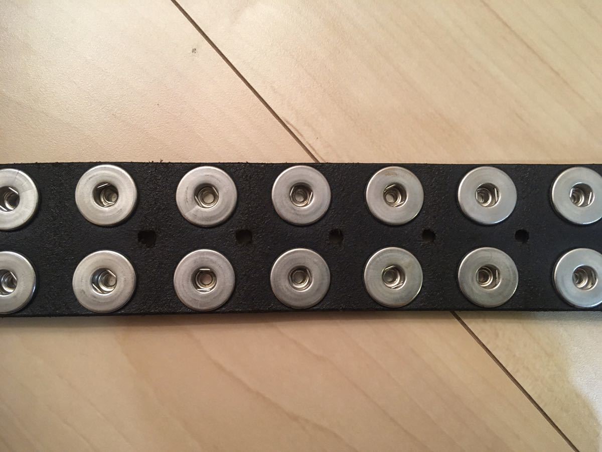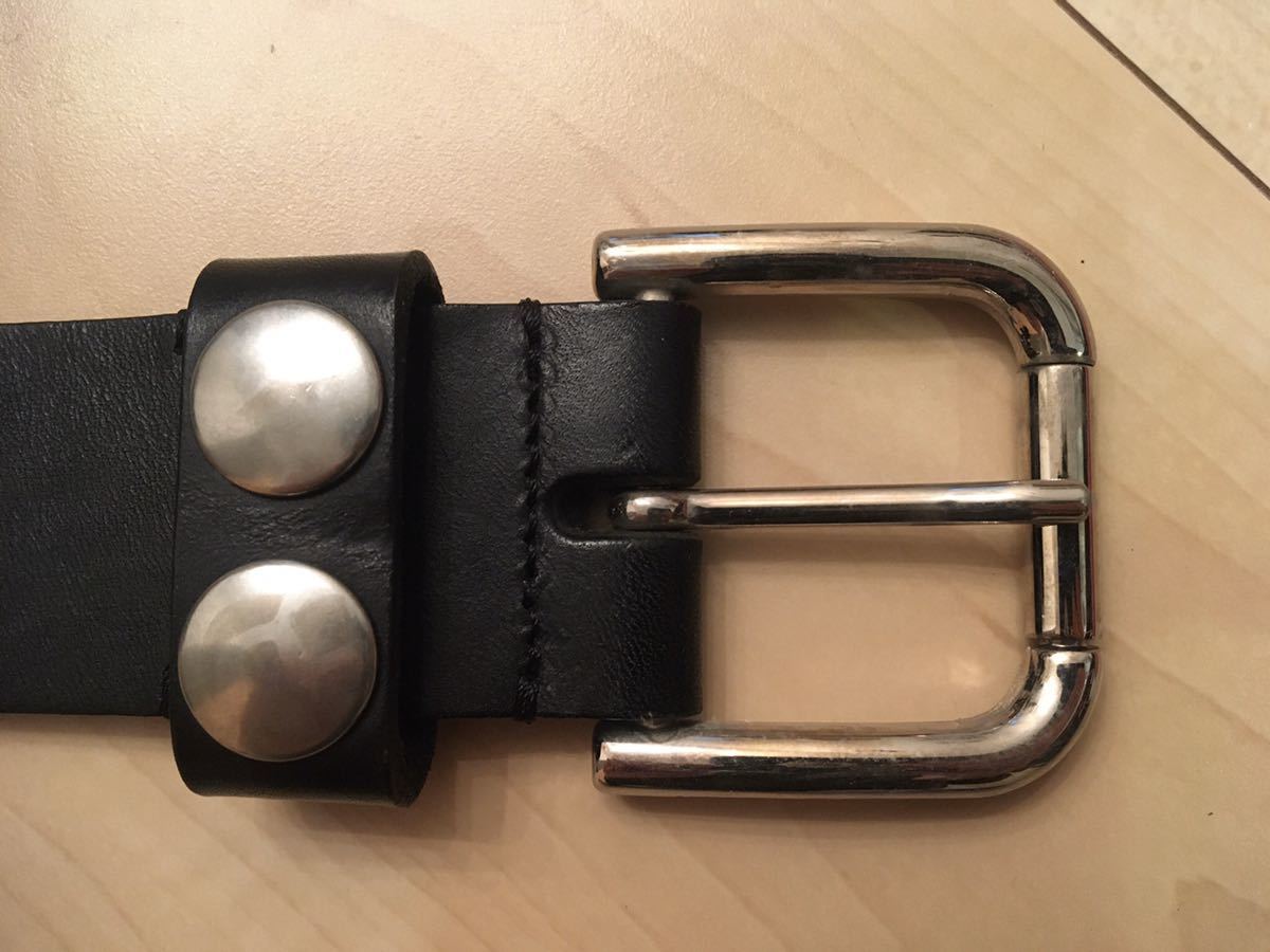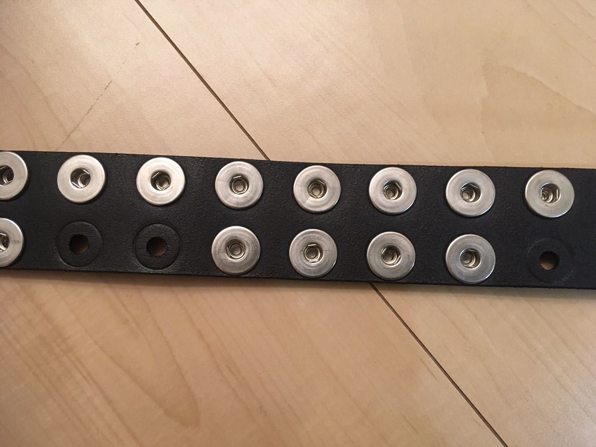 レザー、スタッズに若干の傷、革に皺が見られますがまだ硬さがあり美品です。三つスタッズが外れています。市販品のスナップボタンを付けようと思っていましたがそのまま放置です。