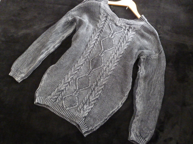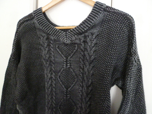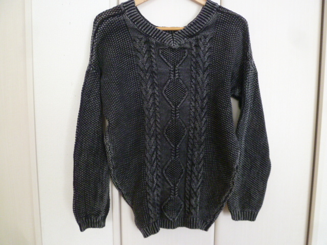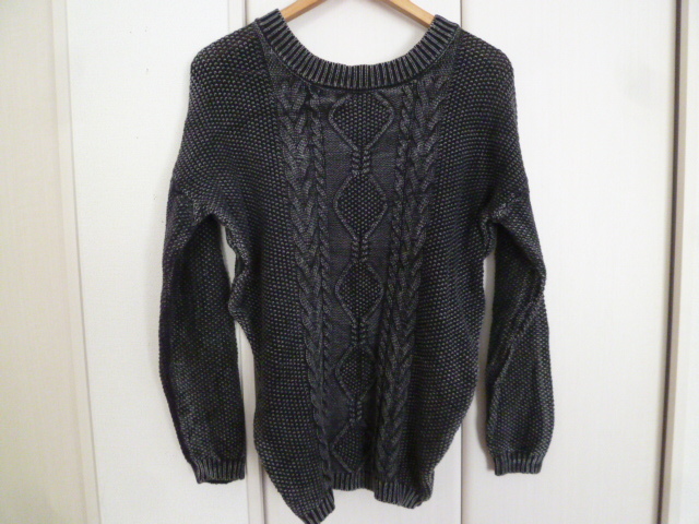 GYDA/ジェイダ○黒ダメージ加工風ケーブル編みコットンニットセーターF/MARK-STYLERブラック長袖○1215①