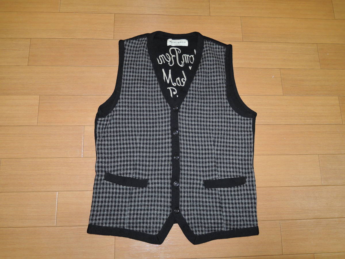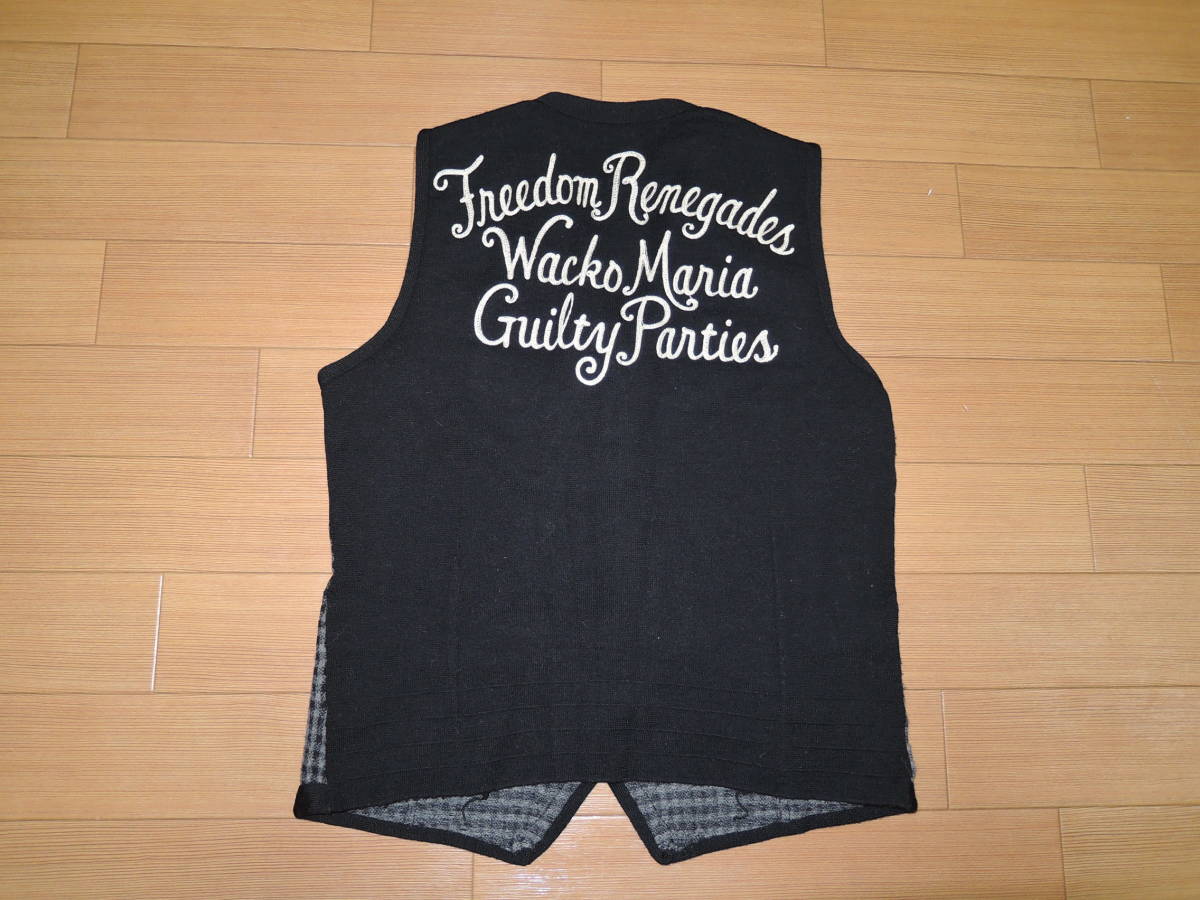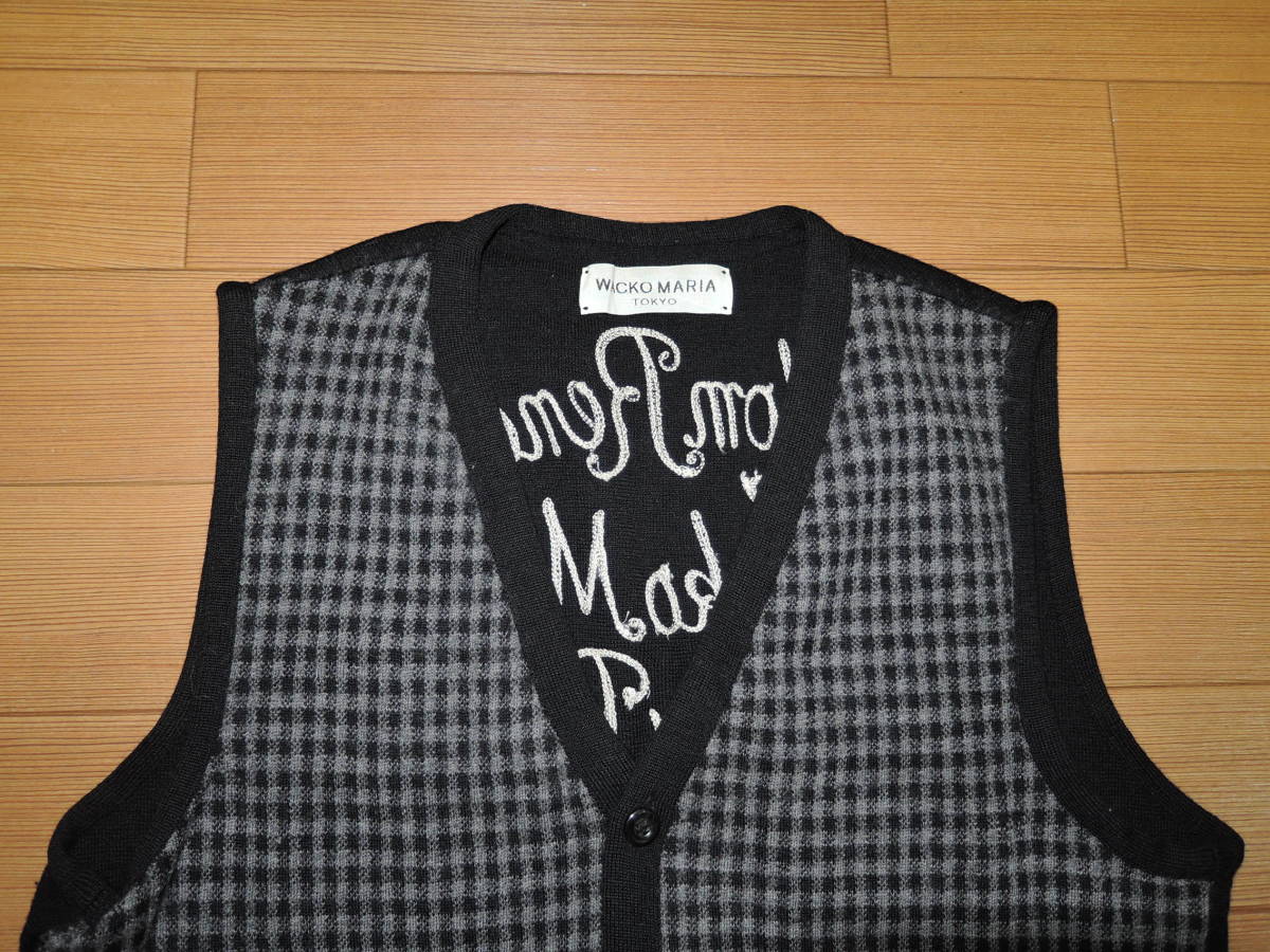 ワコマリア WACKO MARIA チェック柄 ニット ベスト M 黒灰 刺繍 /